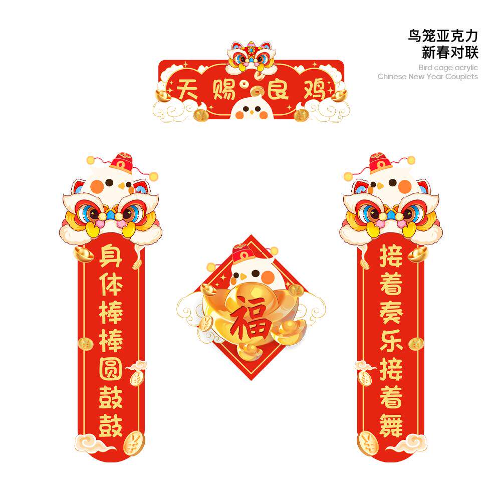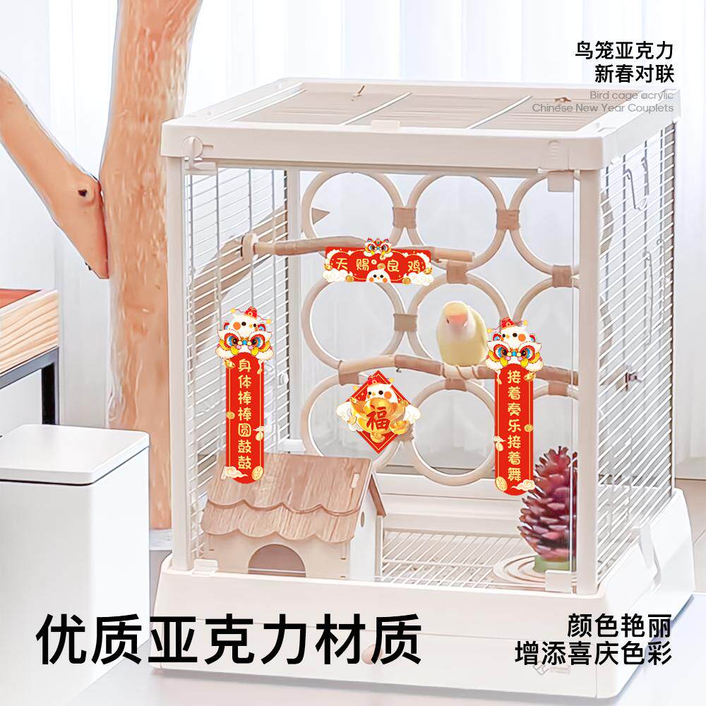 青松宠鹦鹉亚克力对联虎皮玄凤牡丹春联新春鸟笼装饰摆件玩具用品