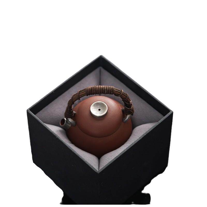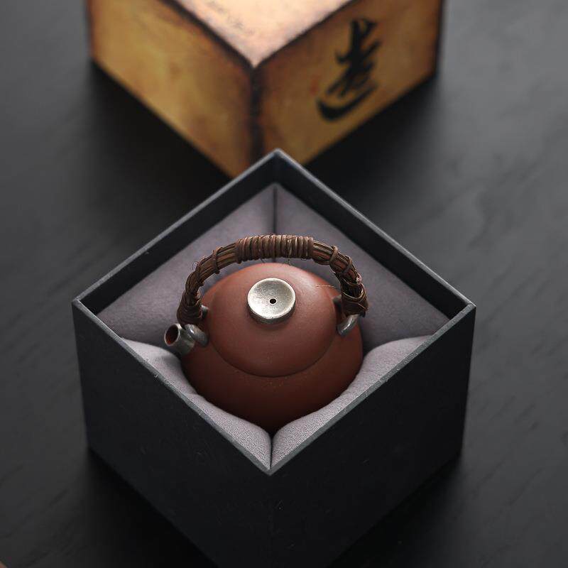 藤编手提圆壶鎏银小茶壶提梁壶家用高档原陶紫砂泡茶壶单壶小品壶