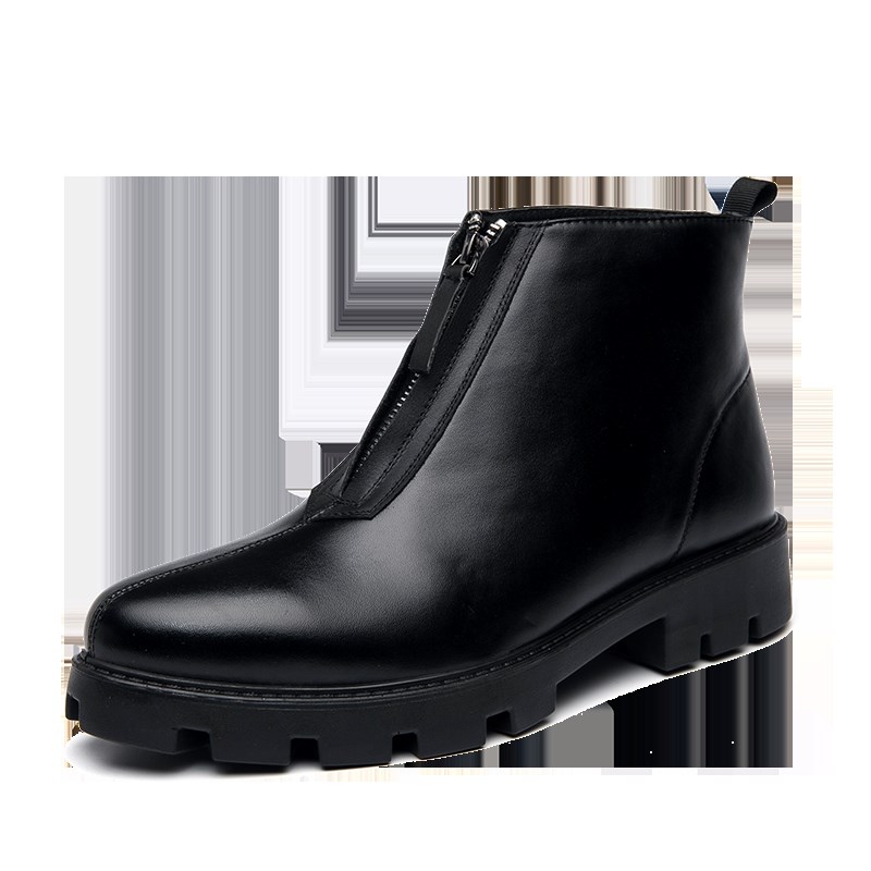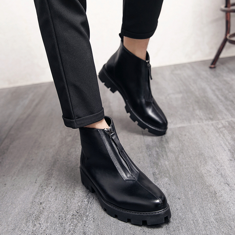 马丁靴男夏季新款皮靴高筒尖头皮鞋内增高拉炼靴子英伦发型师男鞋
