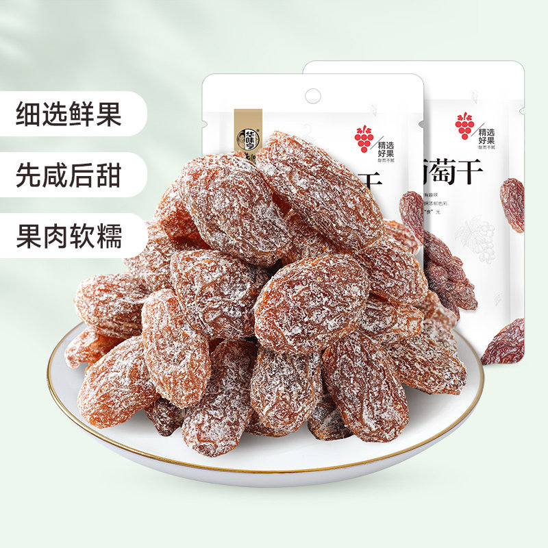 华味亨盐津葡萄干128gx2袋果脯果干新疆葡萄干免洗无籽提子干
