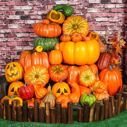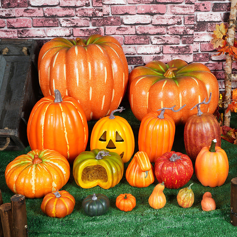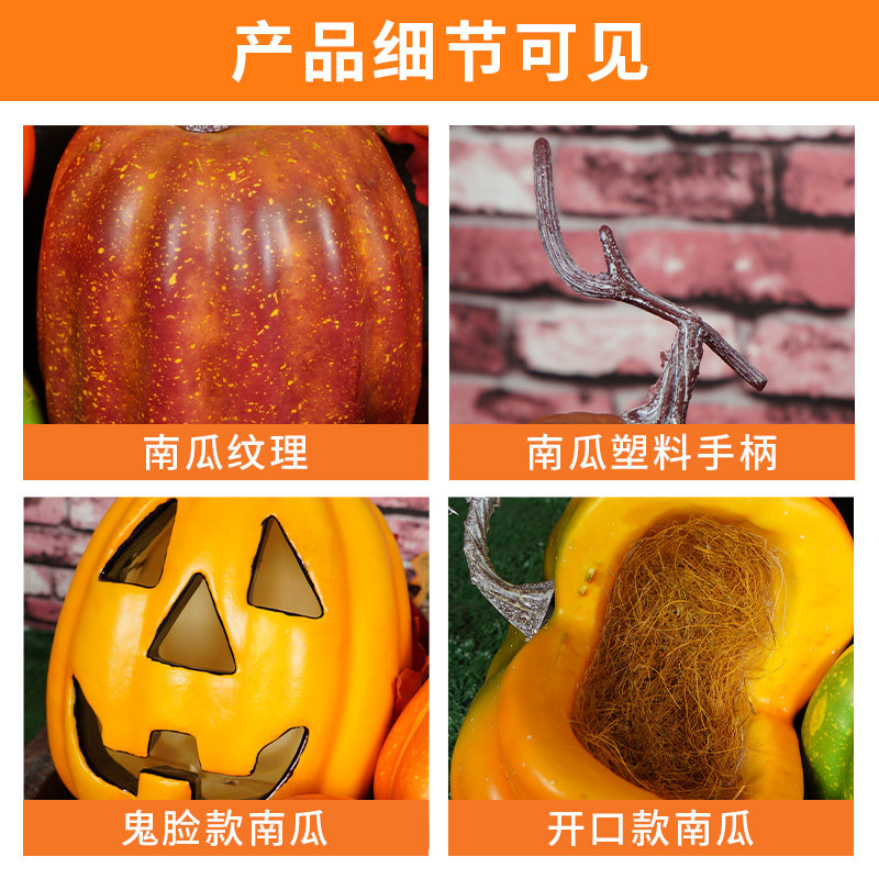 仿真大南瓜模型万圣节鬼脸假蔬菜装饰摄影道具塑料教具摆件丰收
