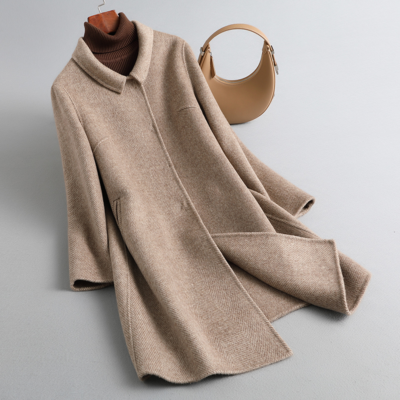 新款大码时髦胖MM100%纯羊毛双面大衣女妈妈装贵妇人宽松毛呢外套