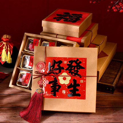 中秋月饼蛋黄酥桃花酥中式糕点包装盒牛皮纸盒子馒头饼干九宫格盒