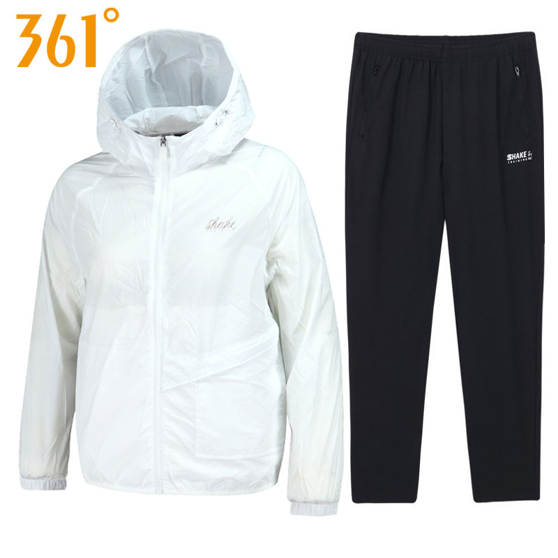 361度女装运动套装风衣2022夏季新款361连帽防晒衣服外套速干长裤