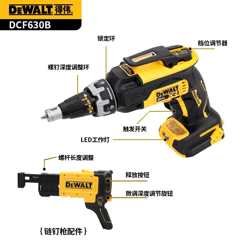 得伟新款DCF630B无刷锂电电钻链钉枪电动螺丝刀干墙螺丝枪DCF620