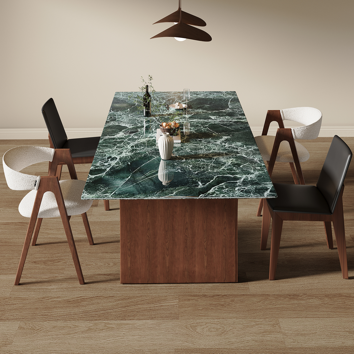 意大利普拉达绿天然大理石实木长餐桌现代极简复古深绿色奢石餐桌