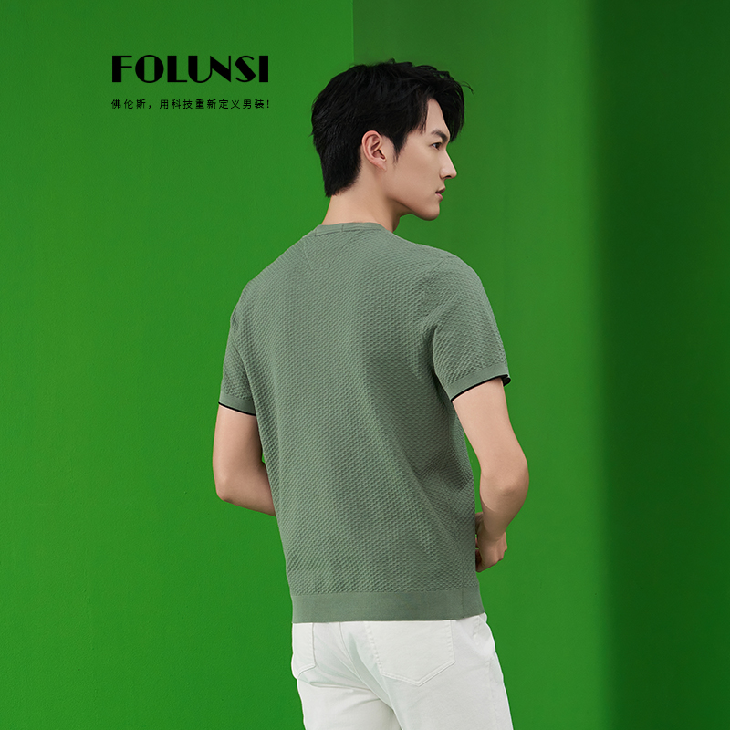 佛伦斯FOLUNSI男装上衣纯棉休闲半袖2024男士t恤短袖男夏季圆领