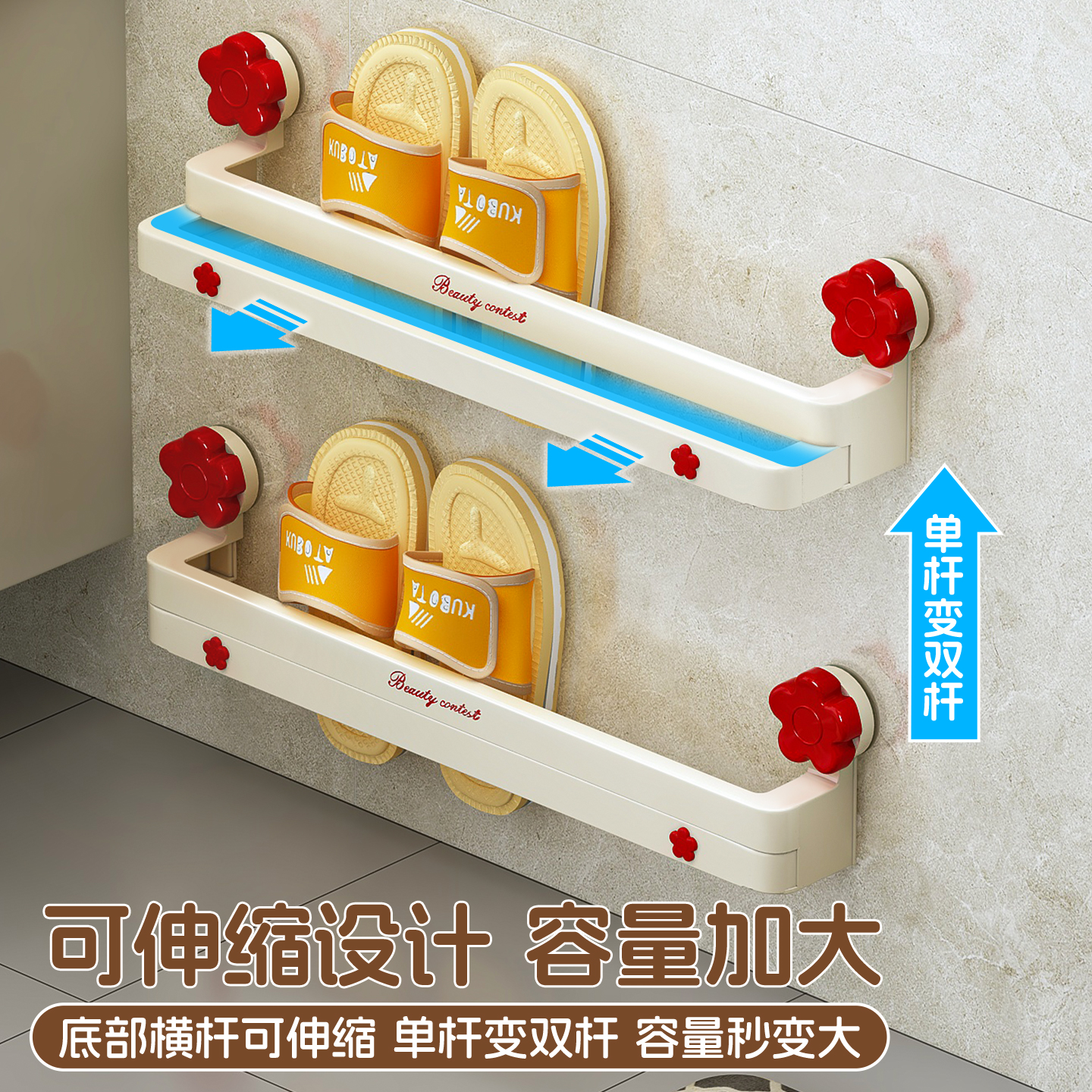浴室拖鞋架免打孔鞋子收纳架卫生间挂架厕所门后吸盘可伸缩置物架