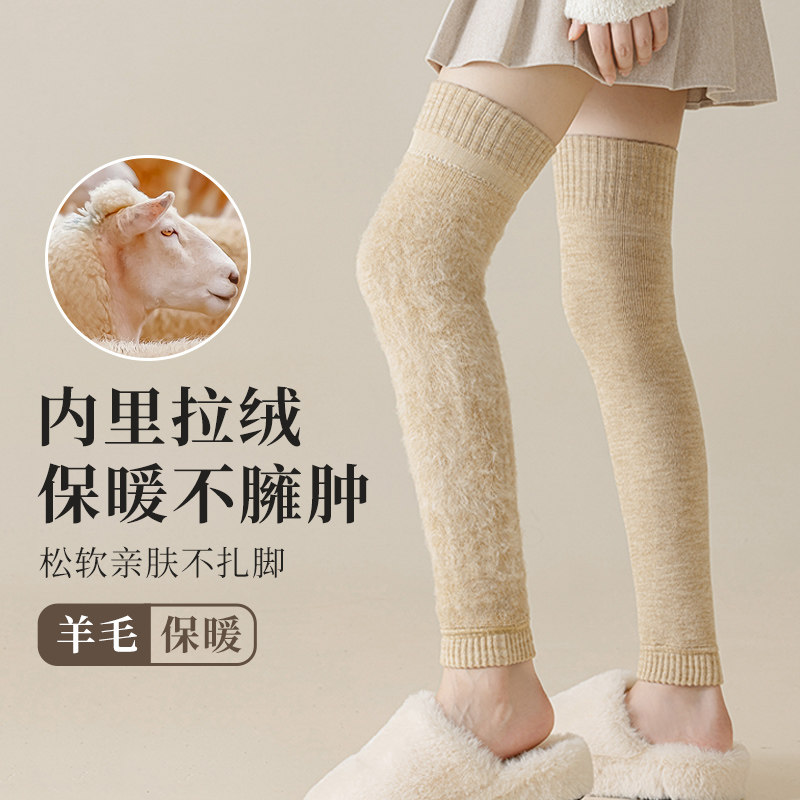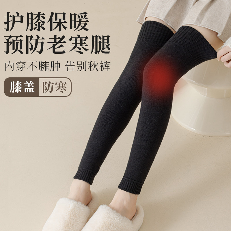 羊毛护膝袜套女过膝盖长筒袜子秋冬季加绒加厚保暖加长护腿长腿套