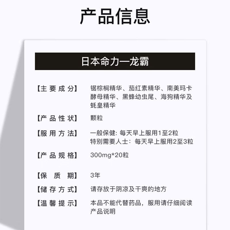 日本命力龙霸进口玛卡片男性肾保健健康生蚝牡蛎补品男士滋补胶囊