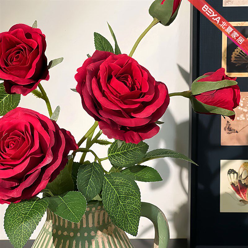 红色玫瑰仿真假摆设客厅餐桌装饰品创意玄关艺小