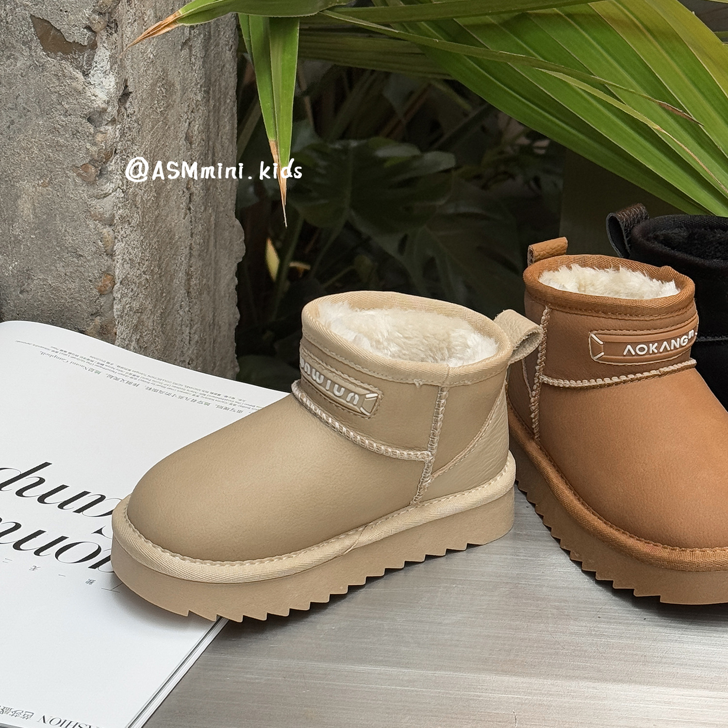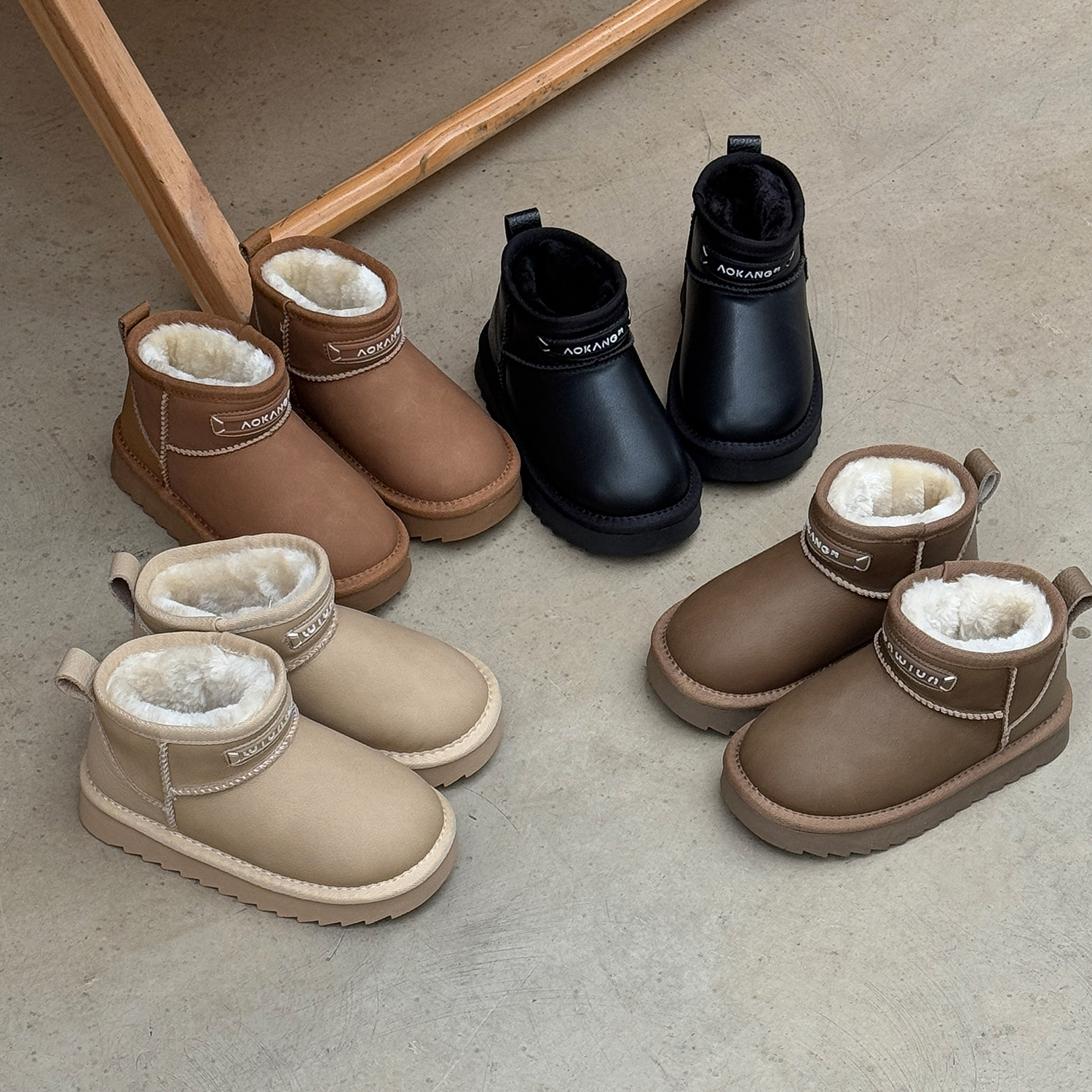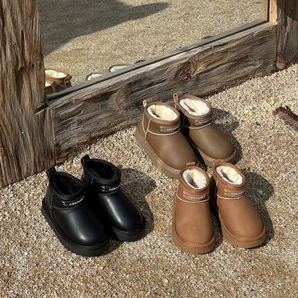 亲子款加厚绒雪地靴冬季新款儿童厚底防滑短靴男女童保暖大棉靴子