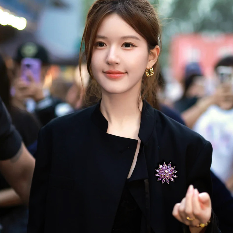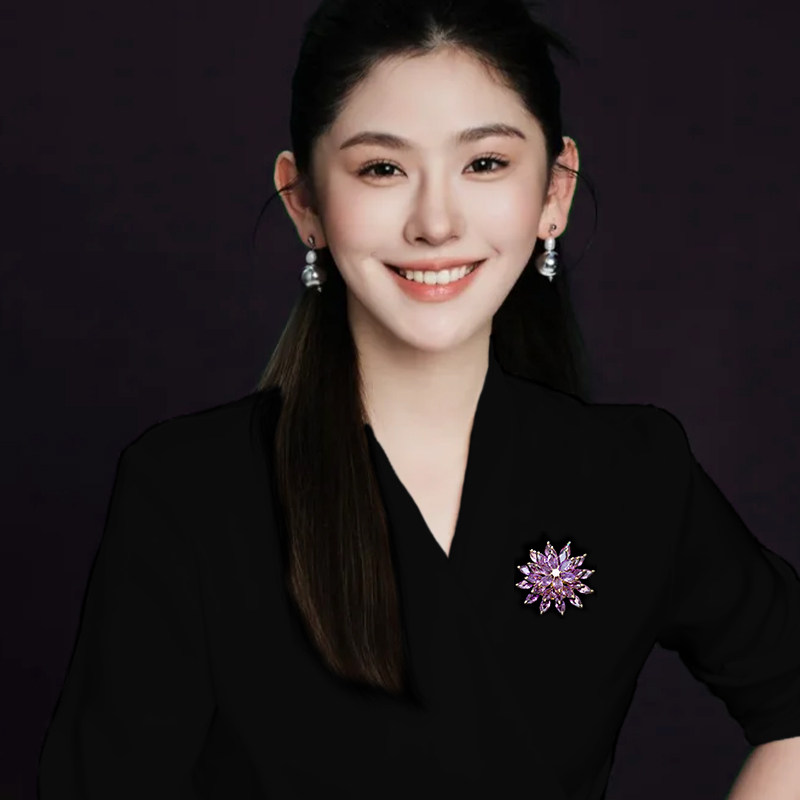 小众紫色雪莲胸针高级奢华气质西装时尚女款精致礼服胸花别针配饰