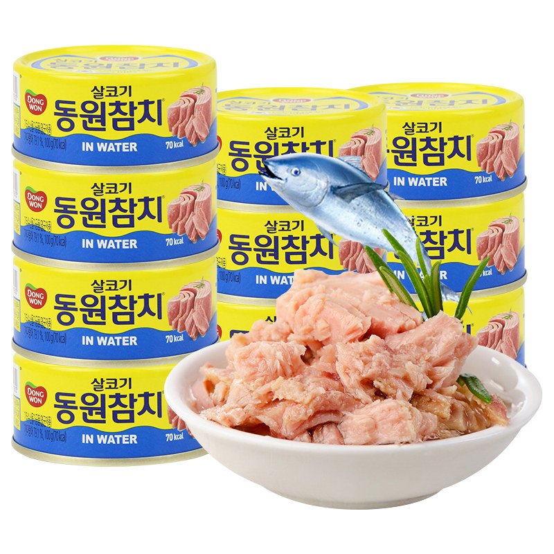东远韩国金枪鱼罐头水浸原味吞拿鱼罐头户外即食0脂肪健身餐食品
