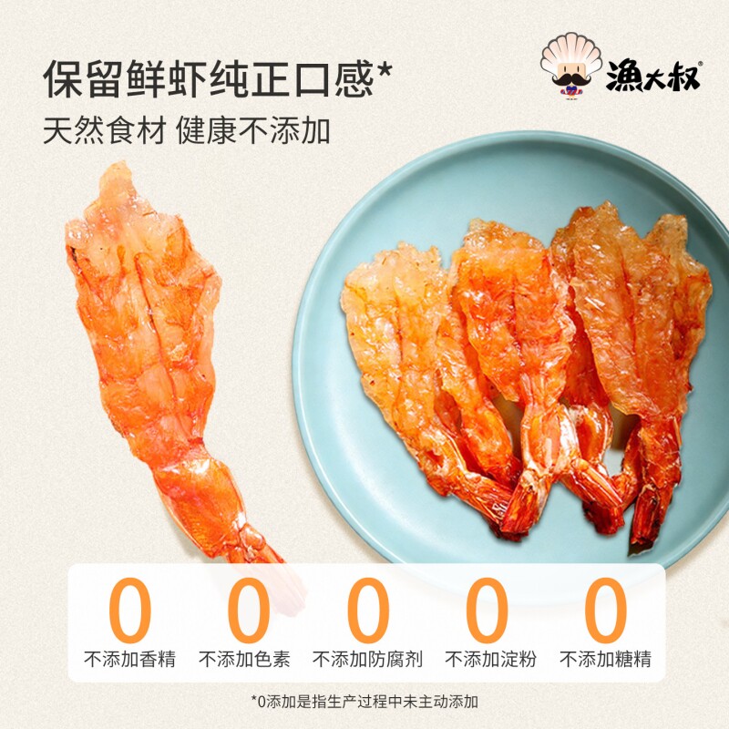 渔大叔大连烤虾干即食海鲜零食开背凤尾虾仁大虾孕妇儿童健康优选