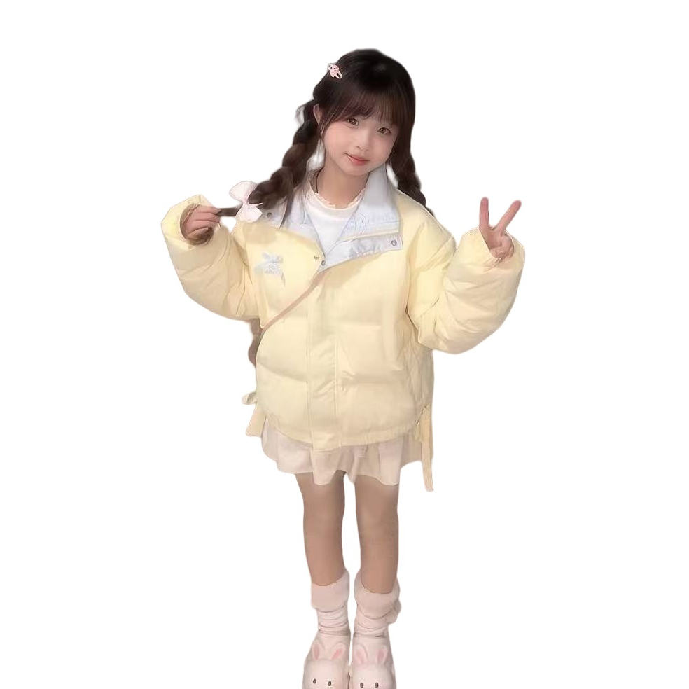 2025秋冬款蝴蝶结奶黄色小个子棉服女冬百搭宽松学生面包服外套