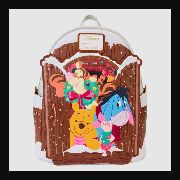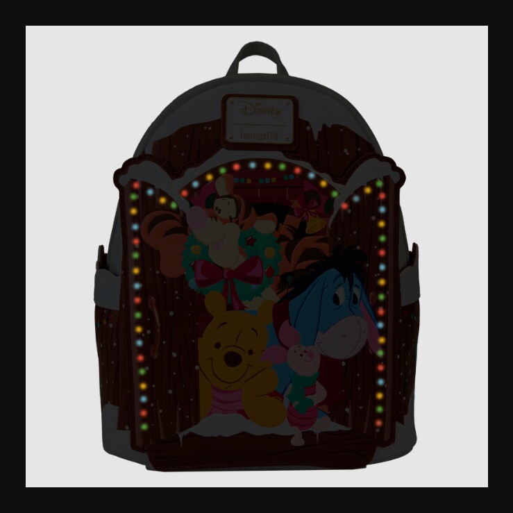 代购正品Loungefly小熊维尼与朋友圣诞祝福发光卡通迷你双肩背包
