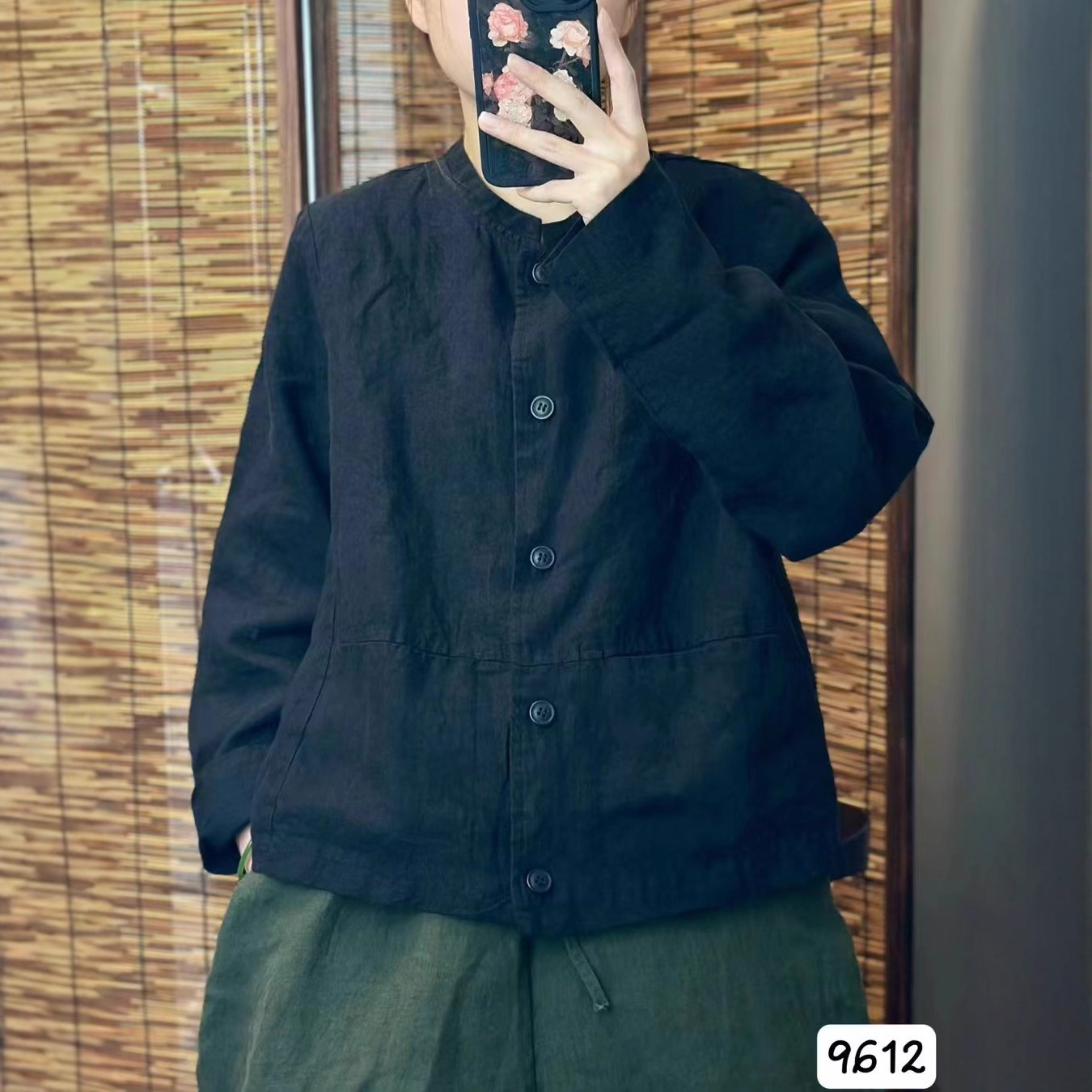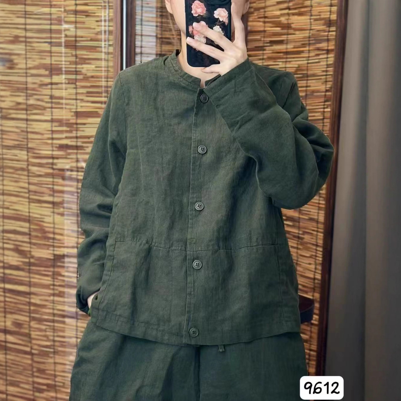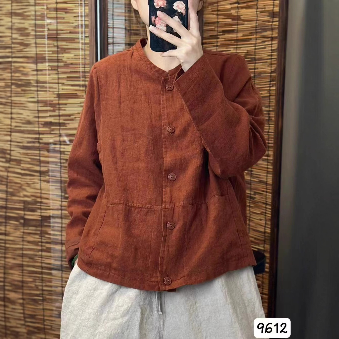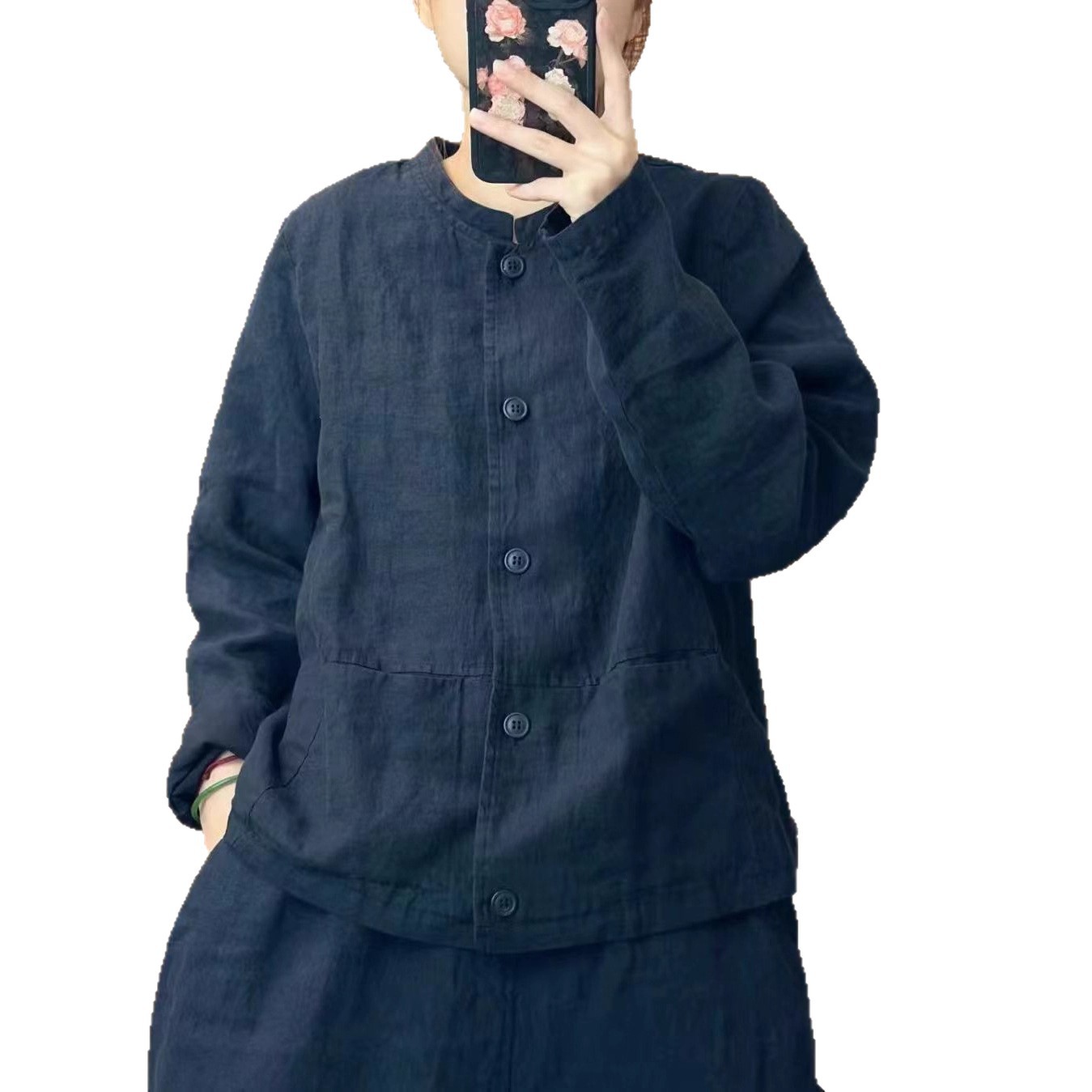 长袖衬衫女 2025年秋100亚麻简约时尚大码女装宽松舒适圆领上衣