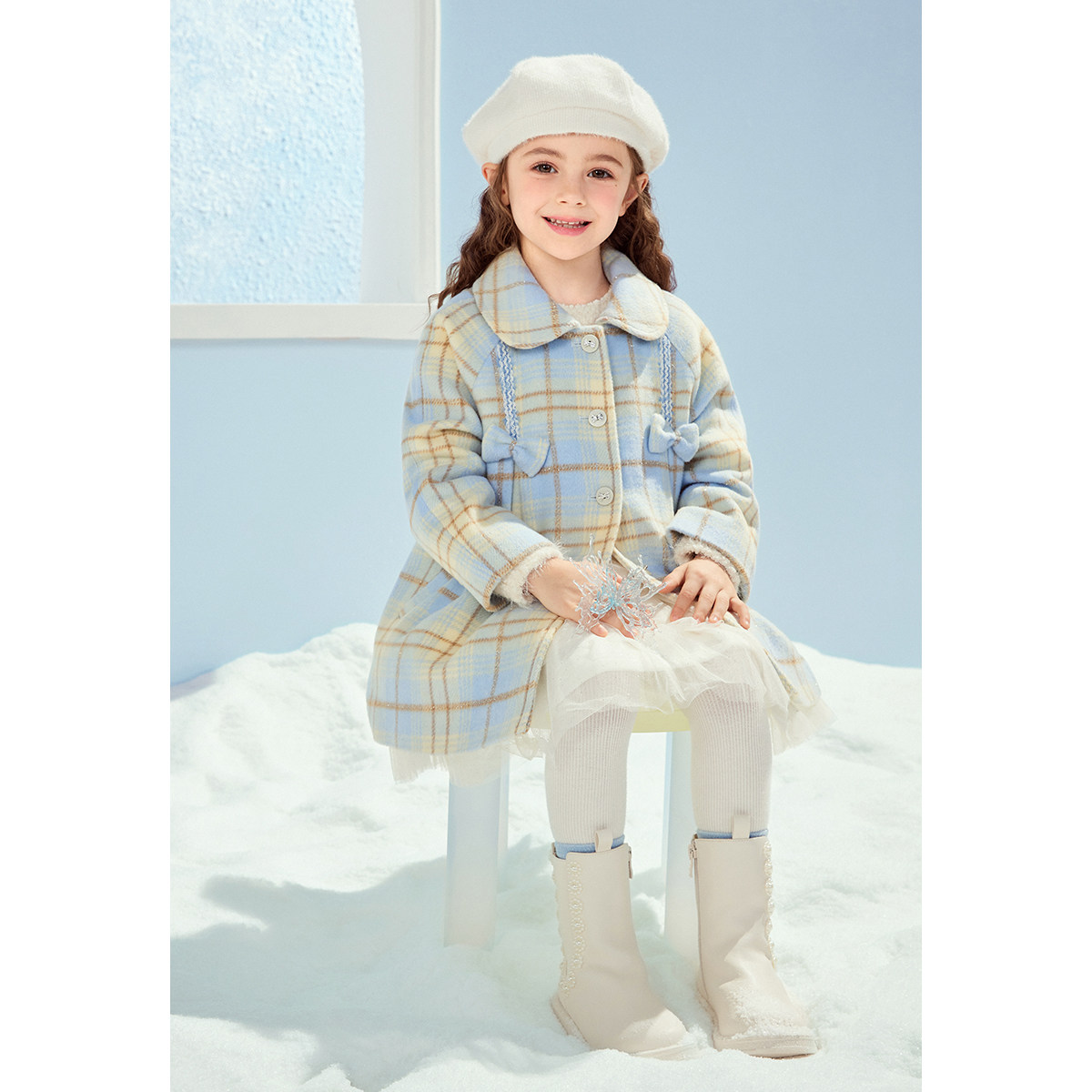 太平鸟女童格纹大衣儿童外套