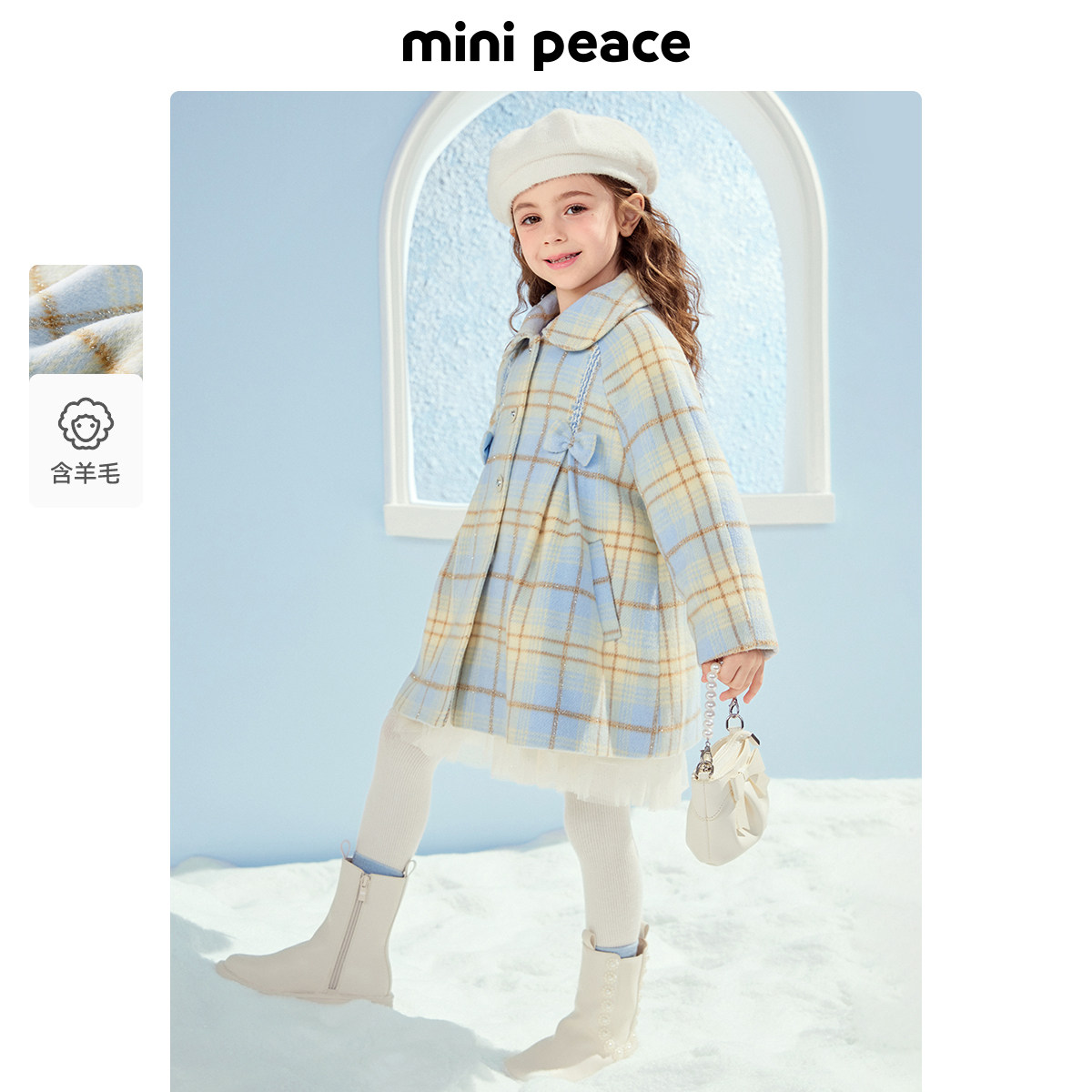 MINIPEACE太平鸟童装女童格纹大衣儿童外套风衣秋冬新款洋气保暖