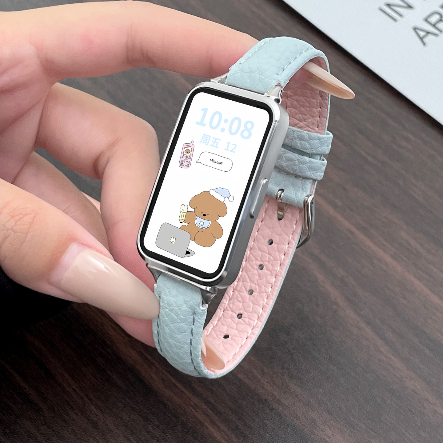 适用华为手环10手表带链荔枝纹皮质9nfc版女生华为band8/7智能运动手腕带荣耀10手表表带秋冬拼色轻奢时尚