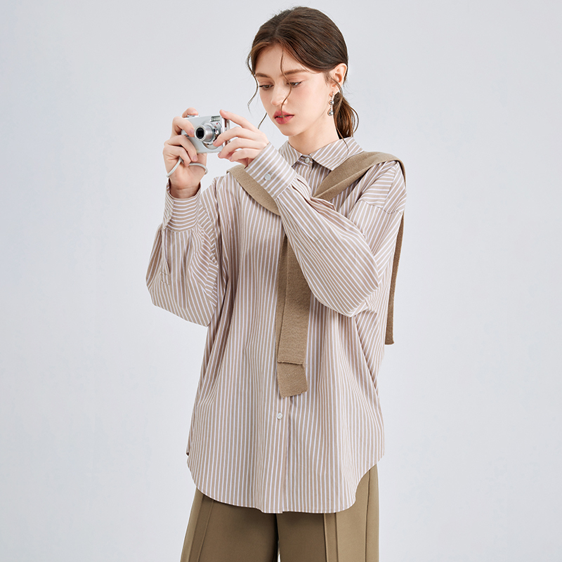 秋水伊人设计感小翻领纯棉衬衫2025年秋季新款女装通勤休闲上衣