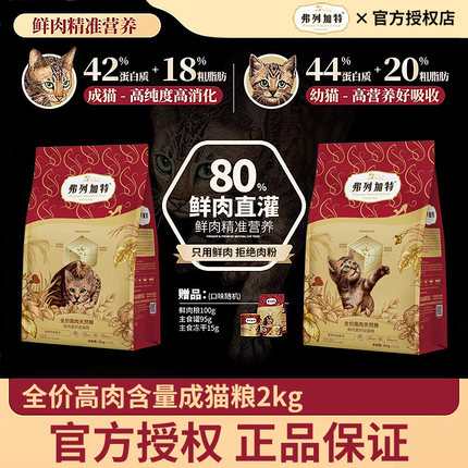成幼猫专用|弗列加特80%鲜肉猫粮2kg高蛋白泌尿健康鸡肉乳鸽主食