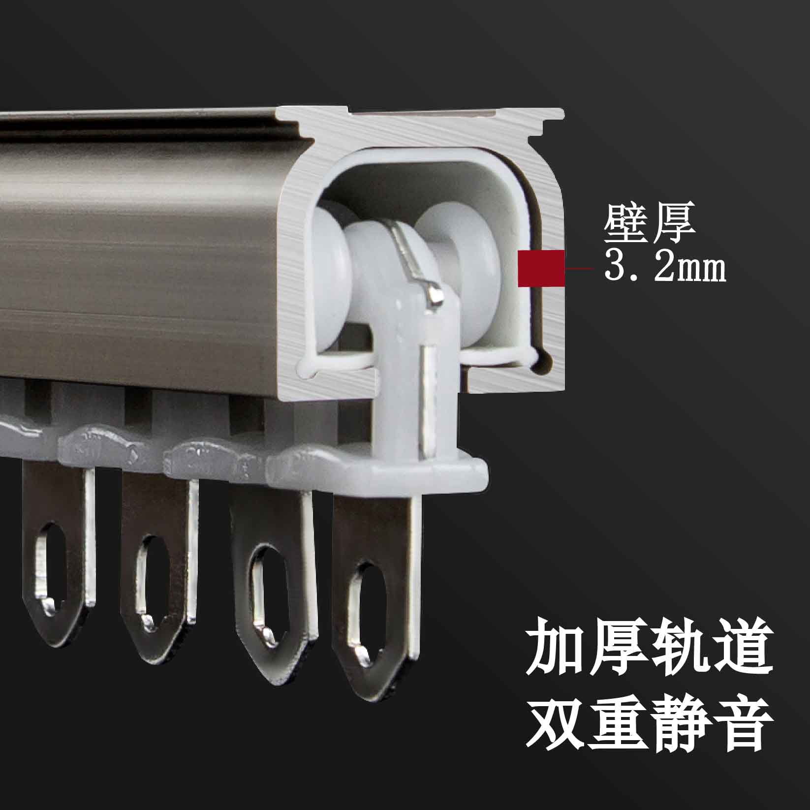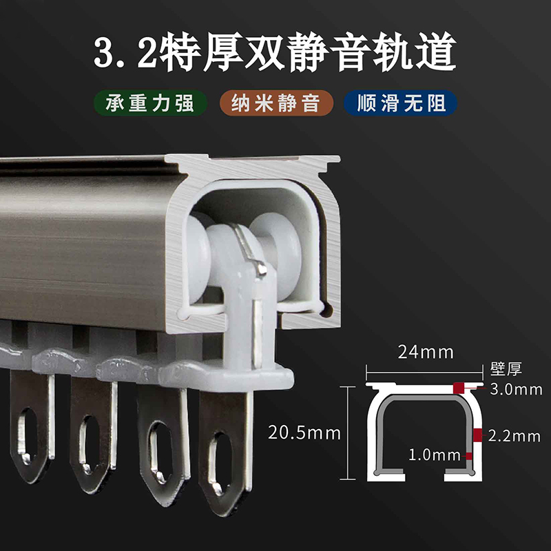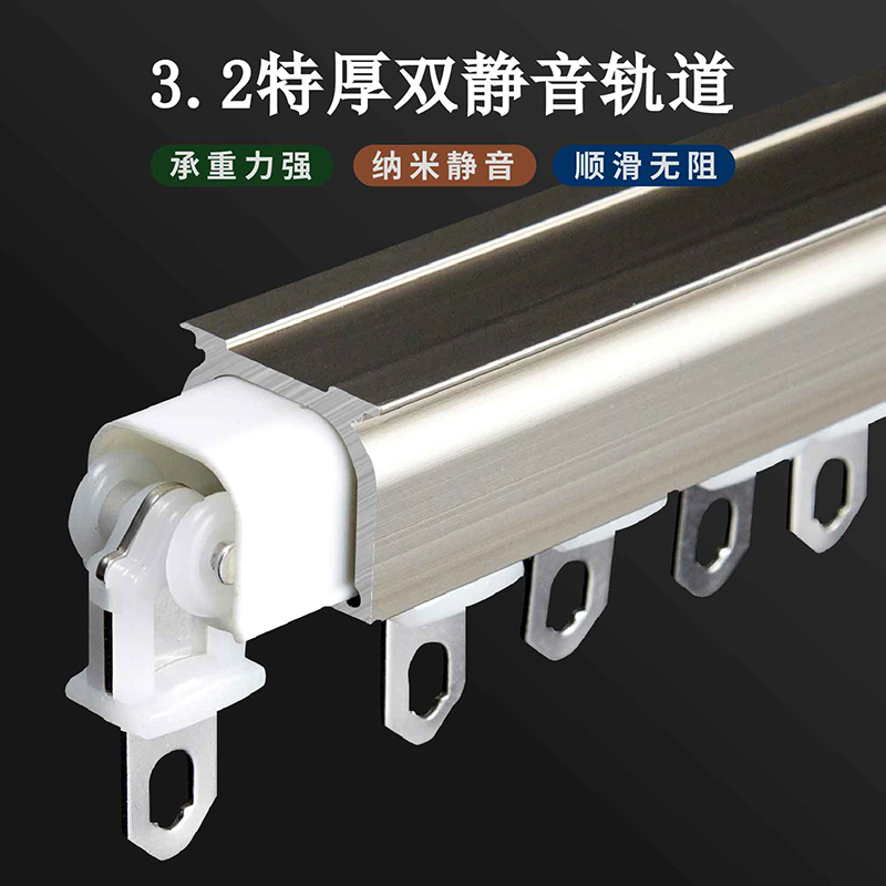 特厚铝合金窗帘静音轨道滑轨导轨滑轮罗马杆滑道单双轨侧顶装直轨