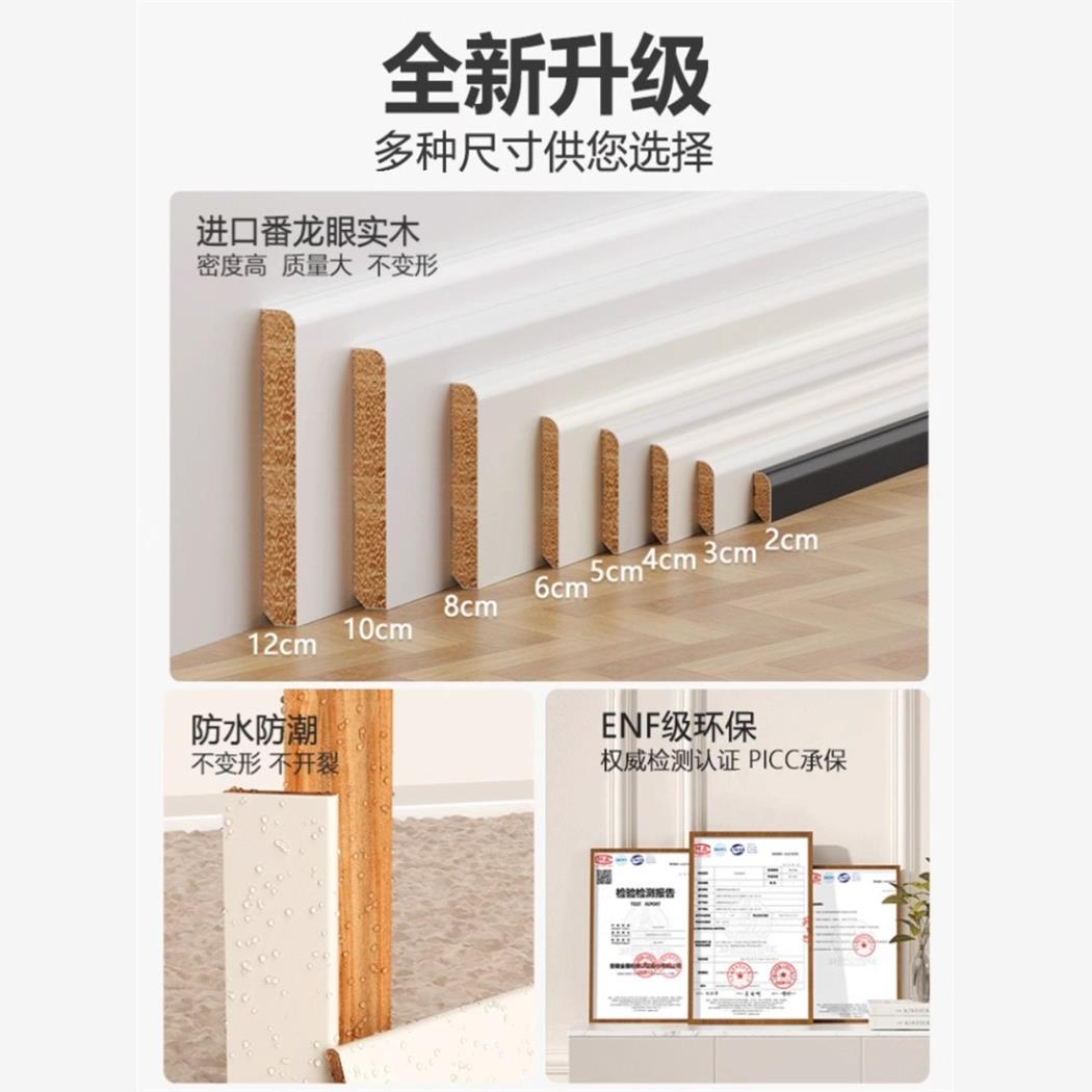 番龙眼纯实木踢脚线3公分奶油风白色地脚线家用烤漆木地板贴脚线