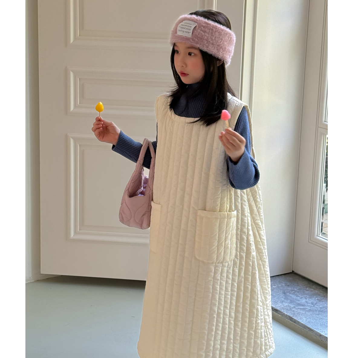 女童夹棉背心裙秋冬连衣裙小女孩长裙竖条绗棉加厚宝宝裙子休闲潮