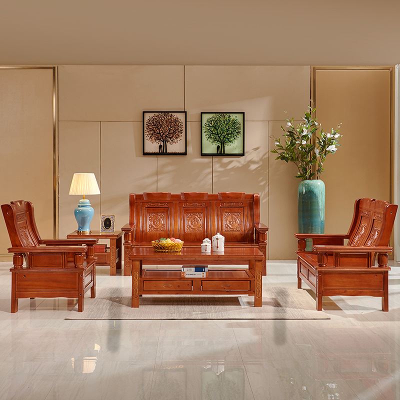 全实木沙发组合红椿木小户型中式仿古沙发办公农村经济型客厅家具