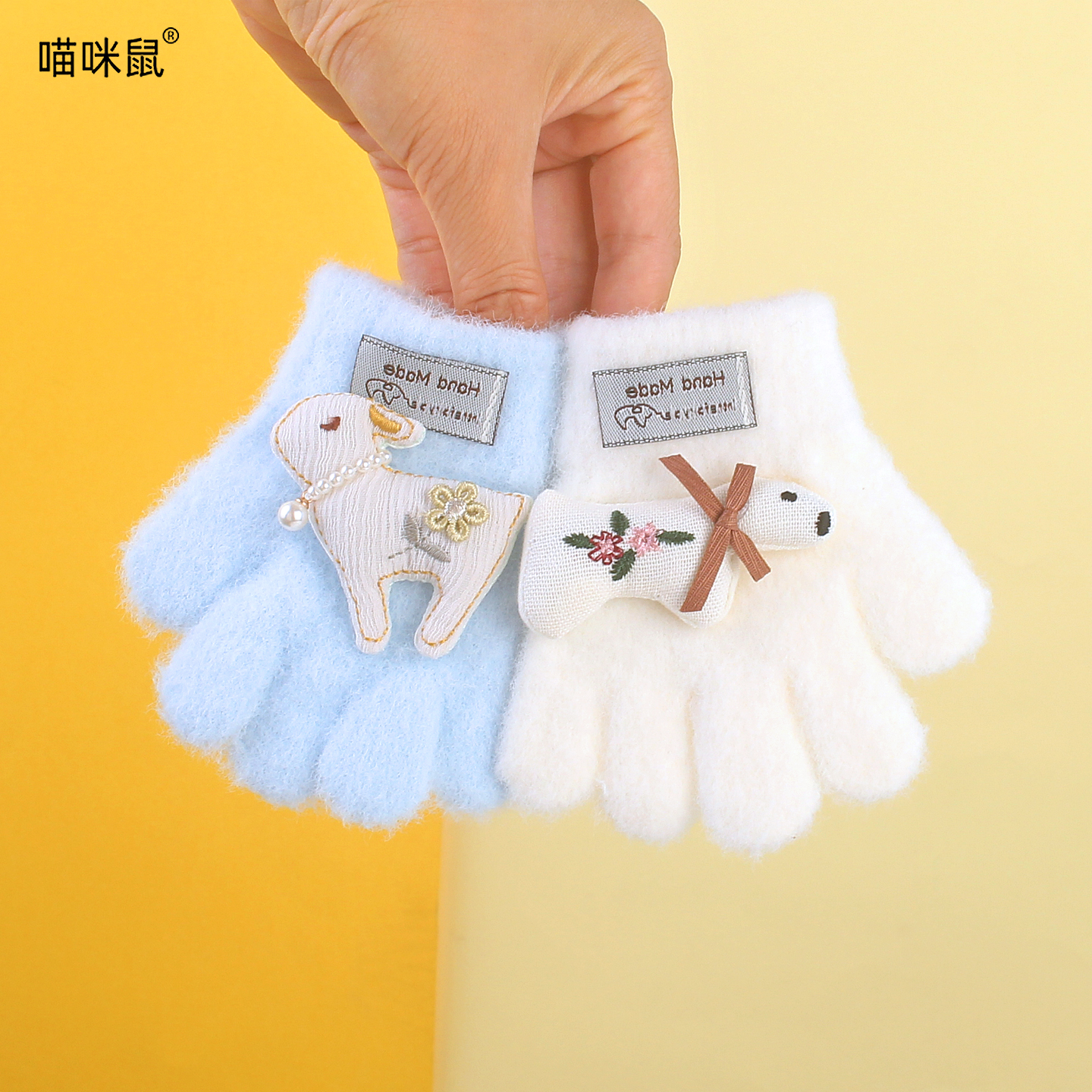 婴儿手套秋冬季五指保暖加绒加厚0-2岁男宝宝1-3女童幼儿可爱萌