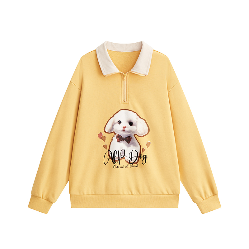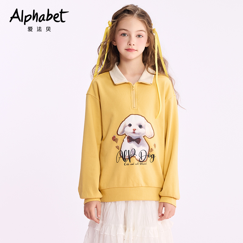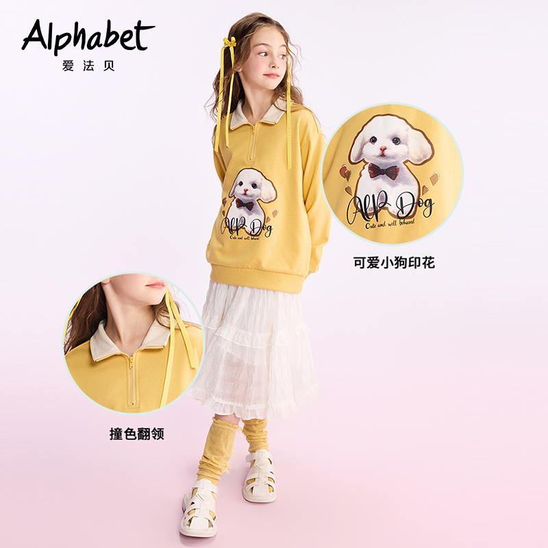 爱法贝25春秋新款女童卫衣宽松长款中大儿童装学生套头衫可爱狗狗