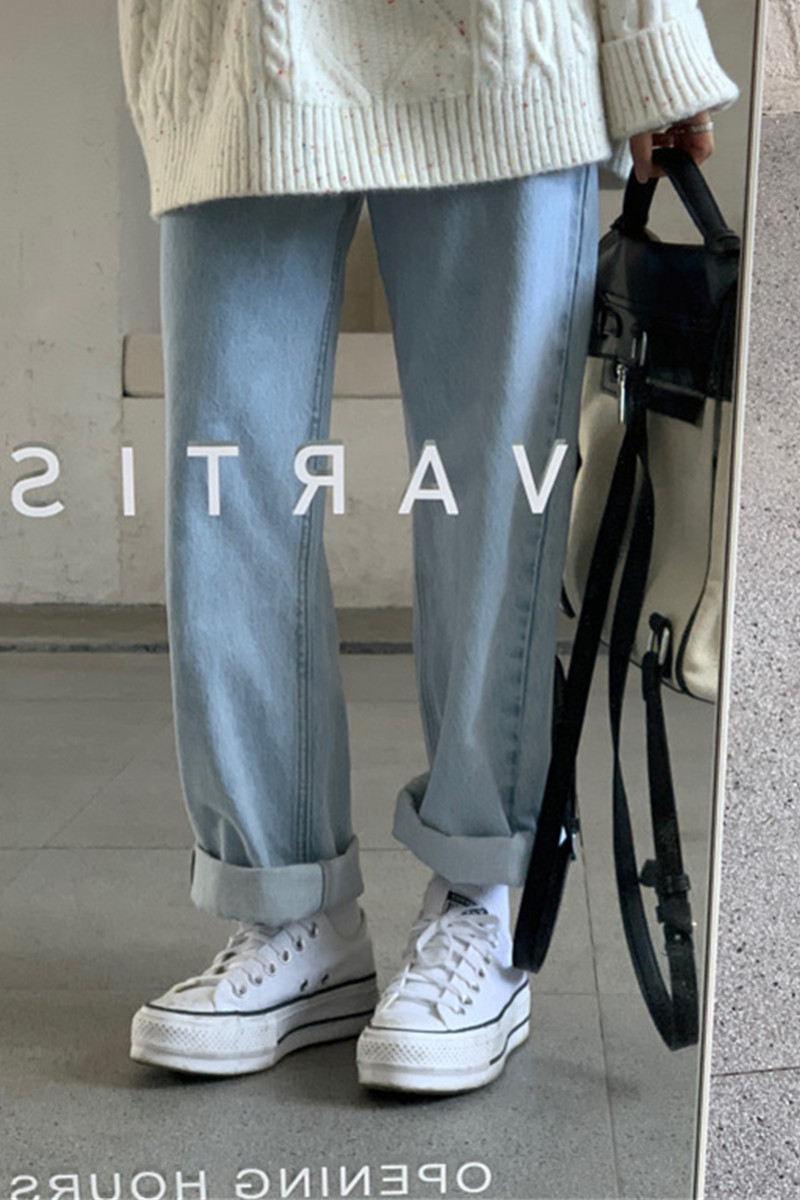 大码胖mm百搭牛仔裤女春夏新款高腰宽松显瘦坠感直筒老爹阔腿长裤