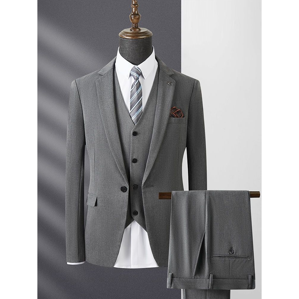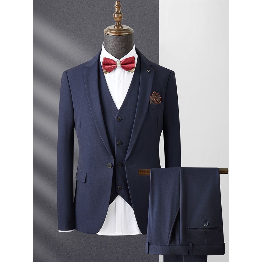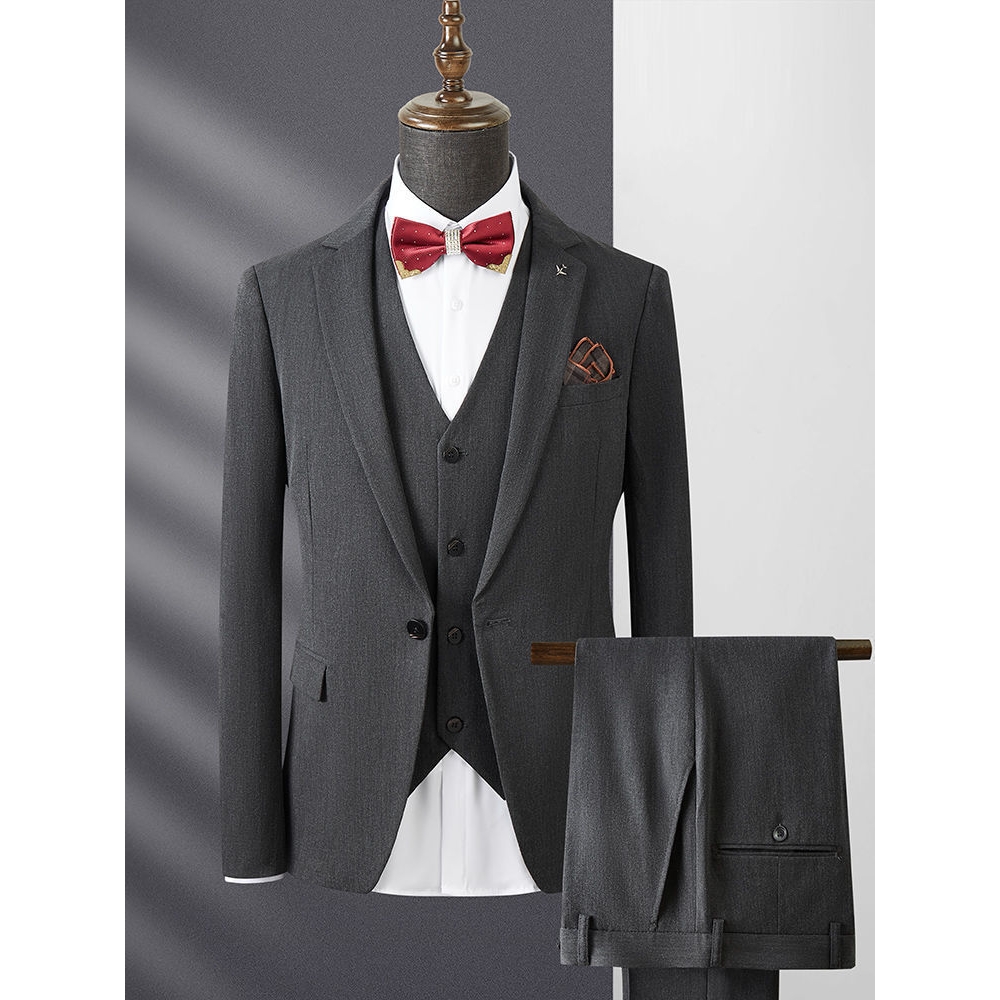 新郎结婚礼服西服套装男韩版修身商务休闲正装大码职业西装三件套