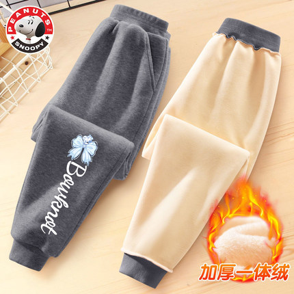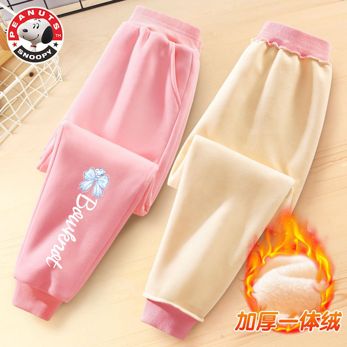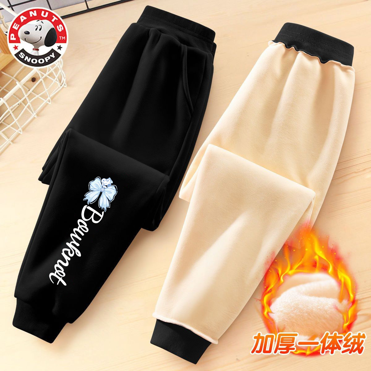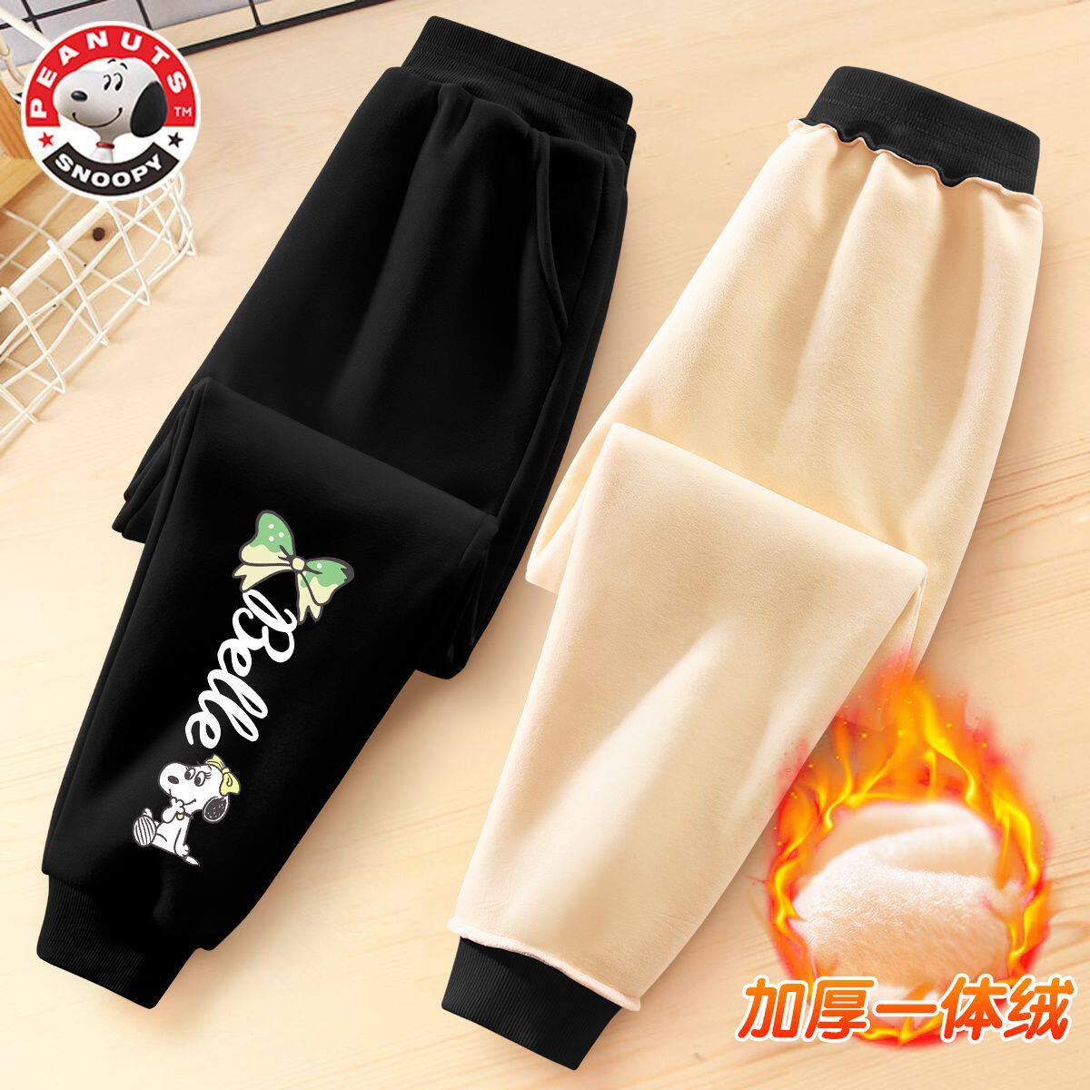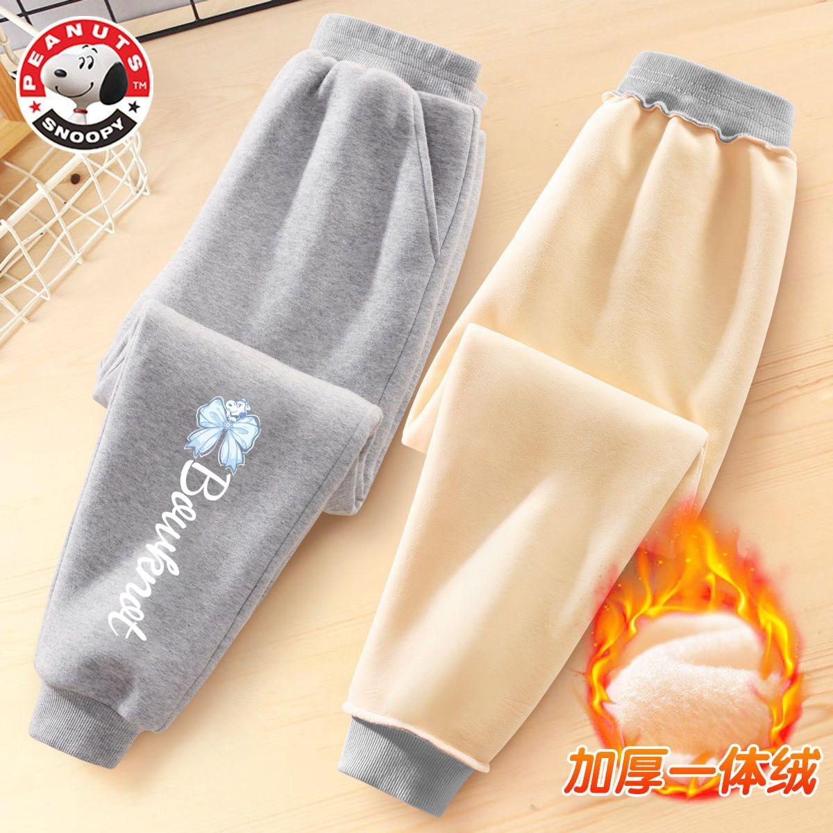 史努比女童裤子冬季加绒加厚一体绒休闲保暖卫裤儿童棉裤外穿宽松