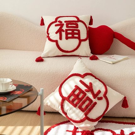 国潮新年中式福字沙发抱枕靠垫套客厅卧室腰枕背红色春节结婚喜庆