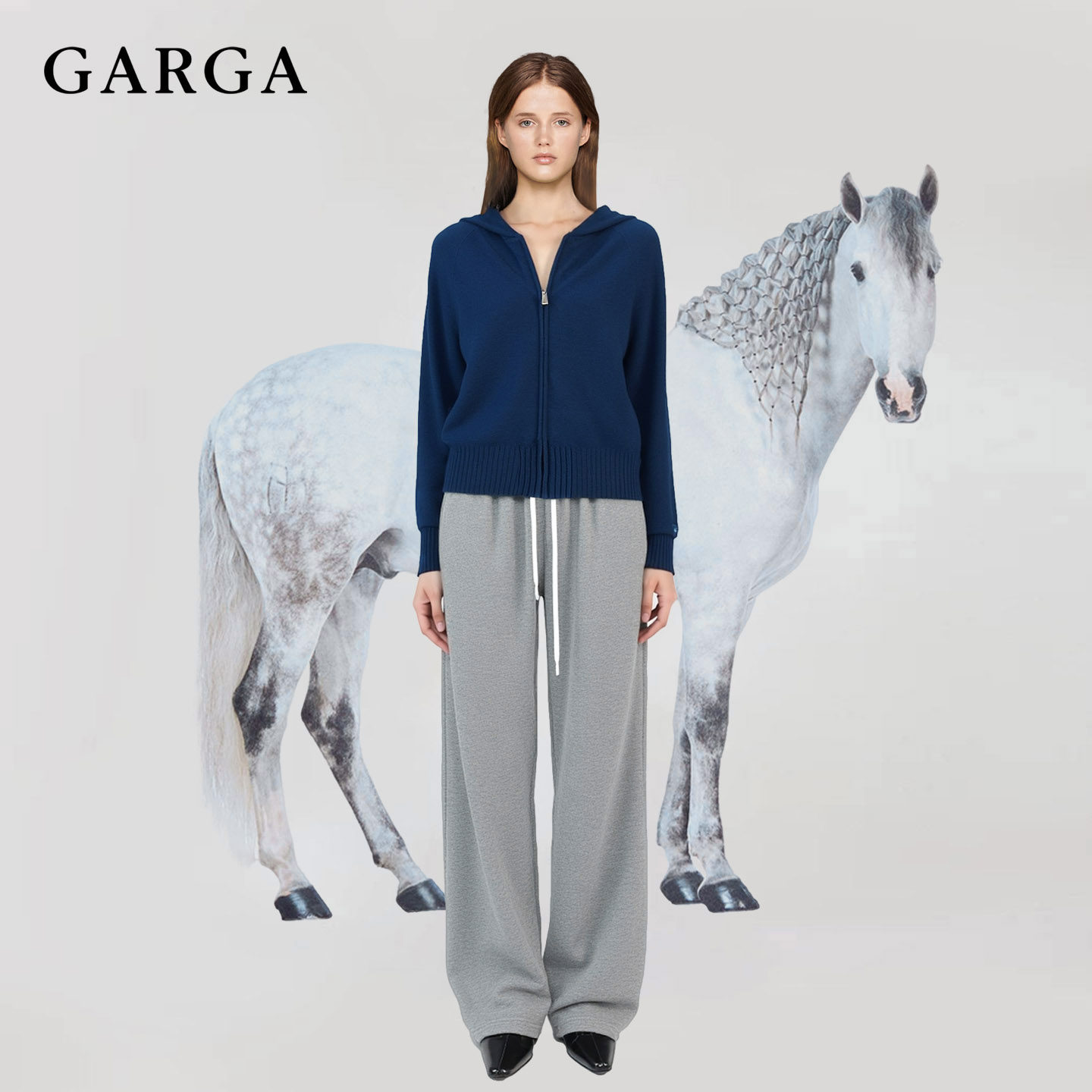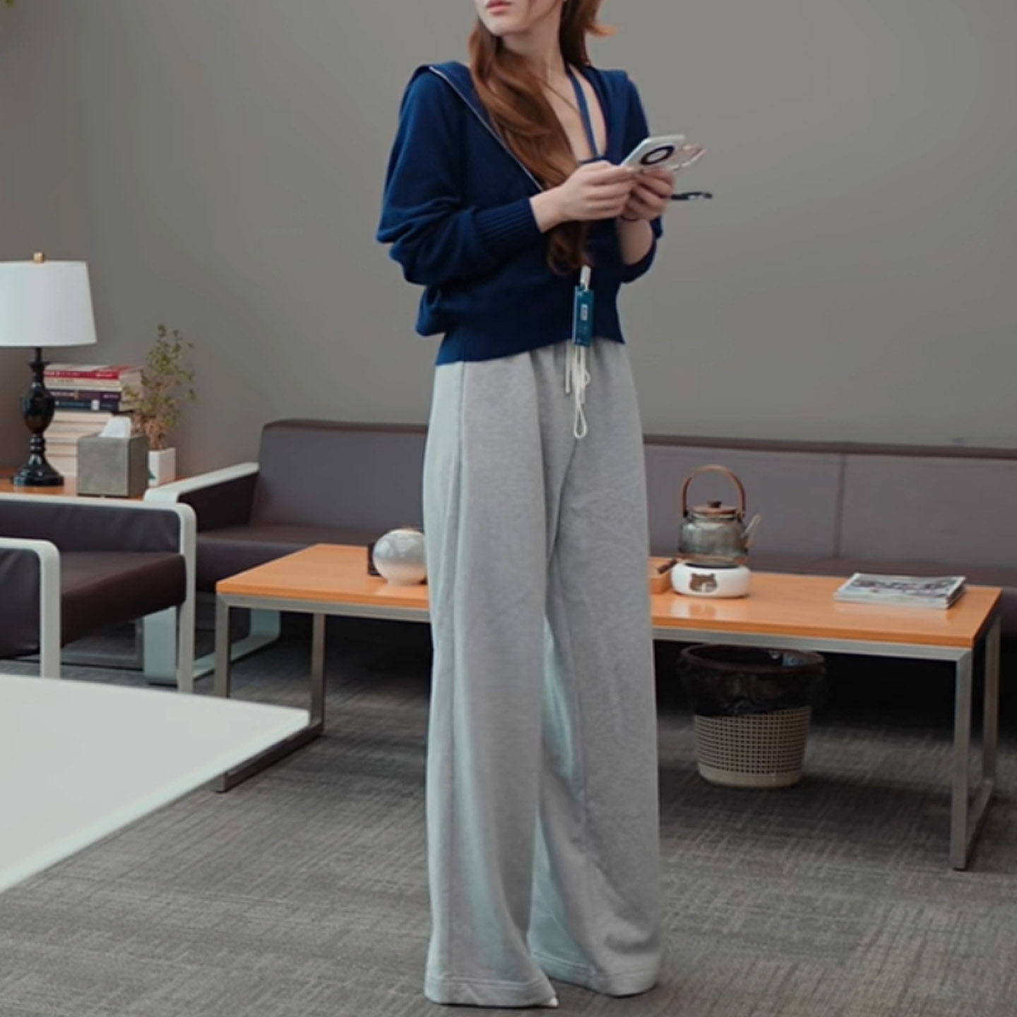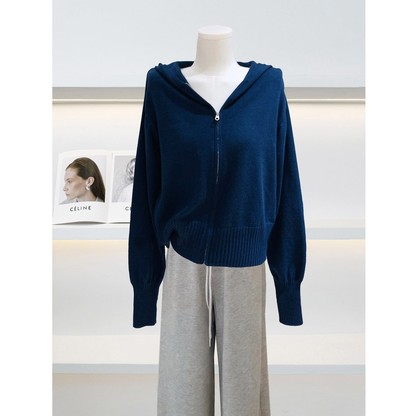 许我耀眼赵露思许妍同款蓝色针织衫连帽卫衣女休闲短款开衫外套秋