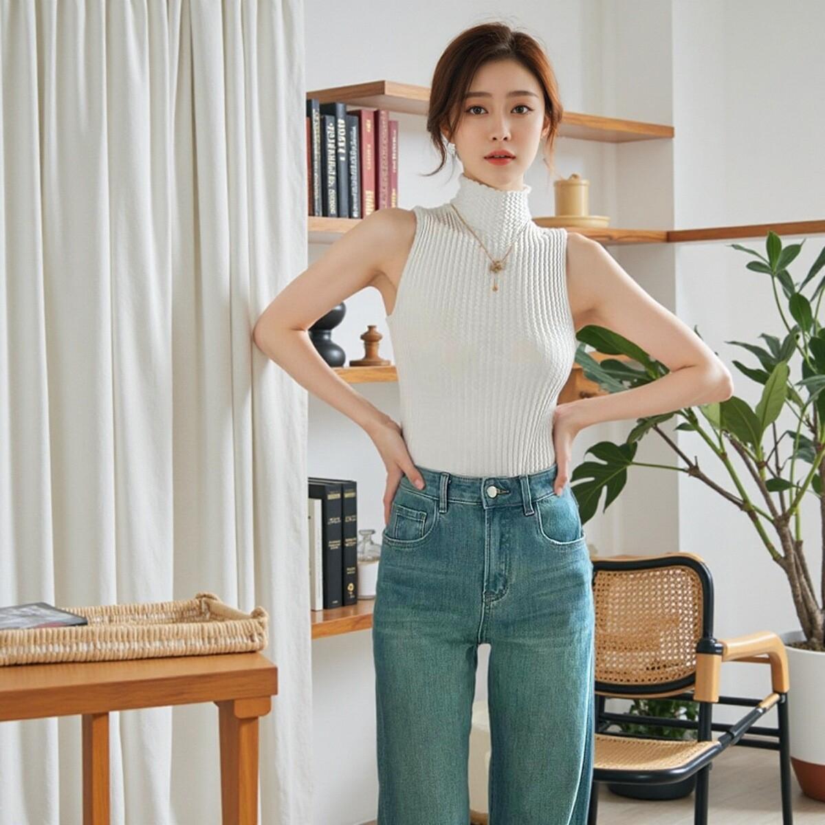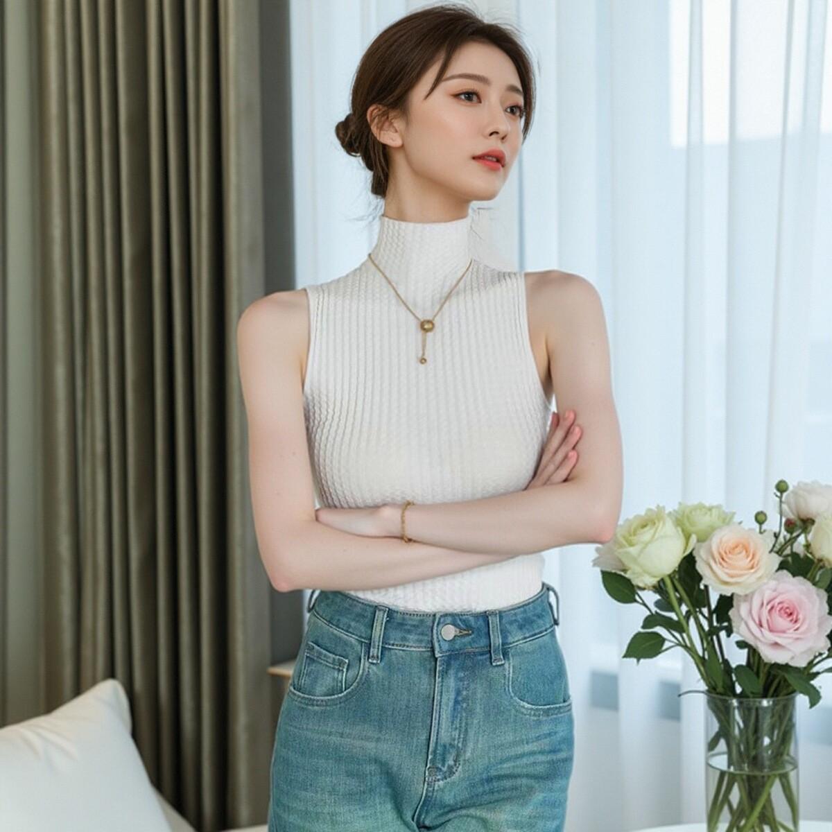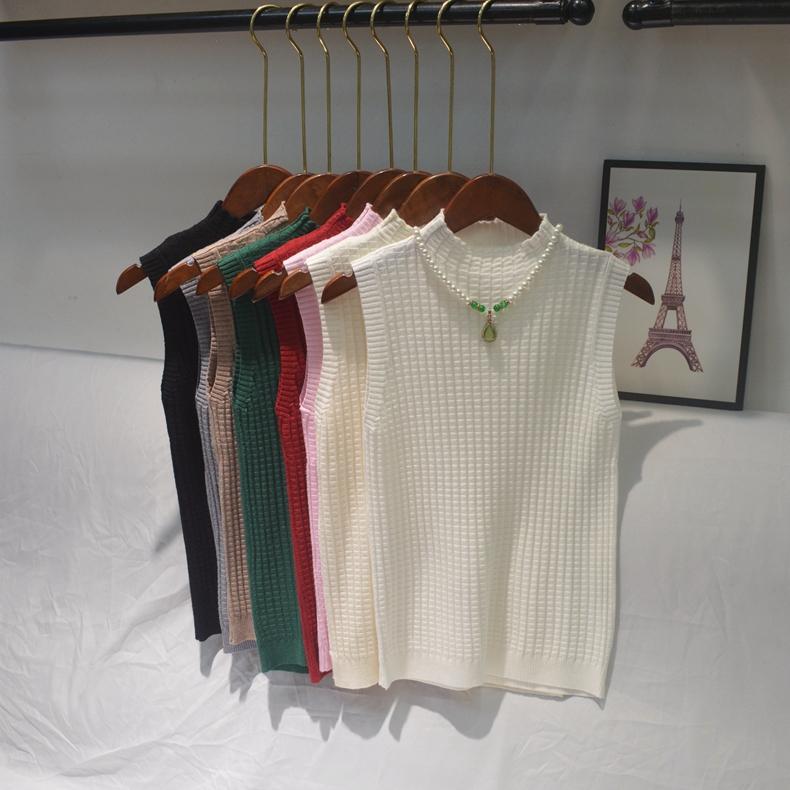 半高领新款吊带背心打底针织秋冬无袖短款修身洋气外穿华夫格上衣