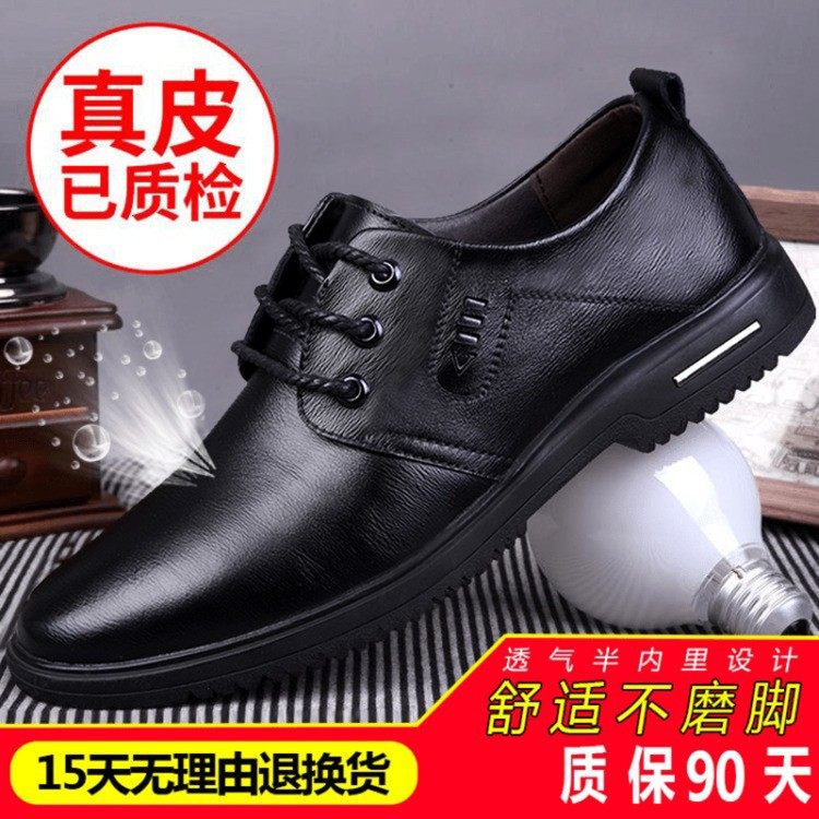 皮鞋男款真皮2025新款夏季透气软底内增高大码男士商务正装休闲鞋