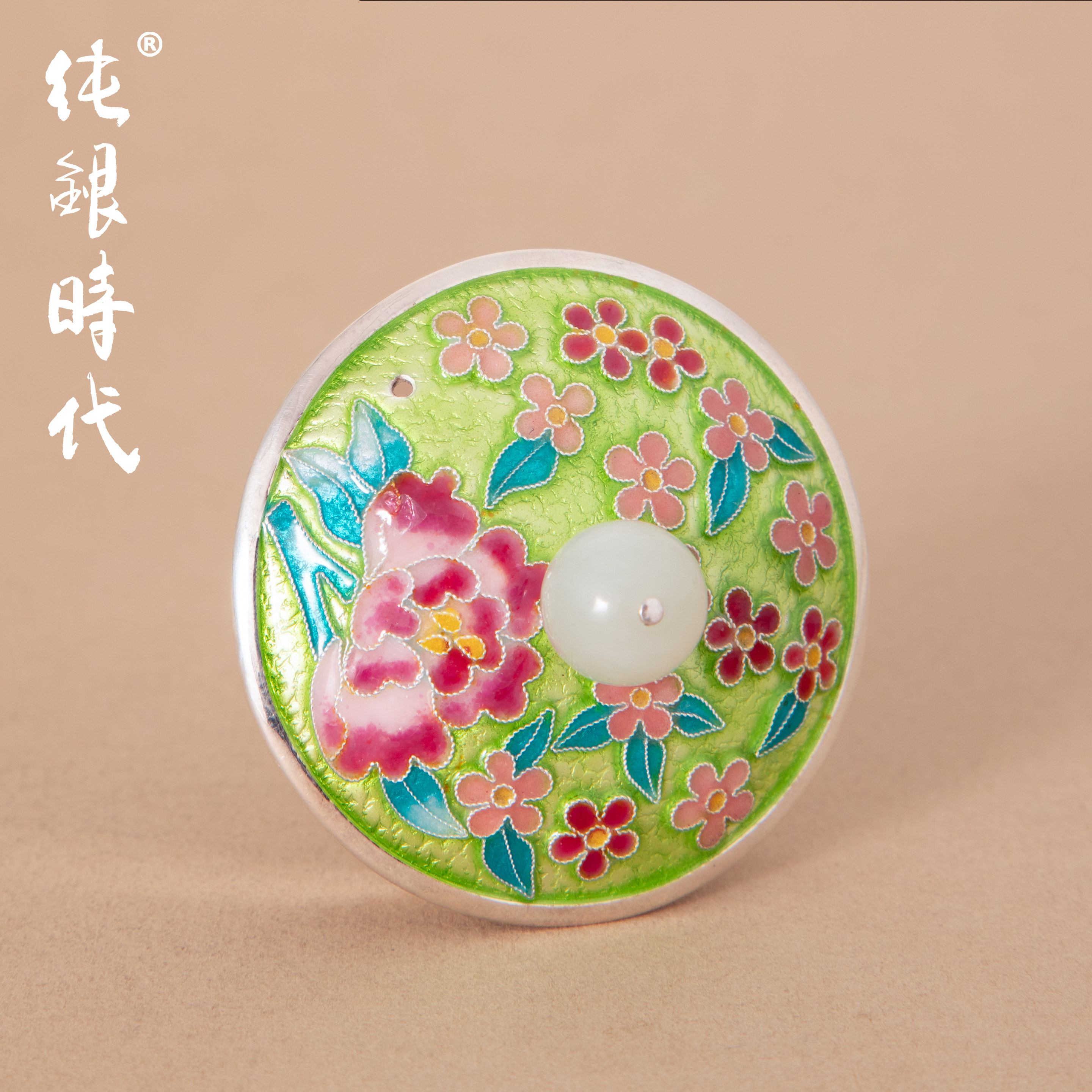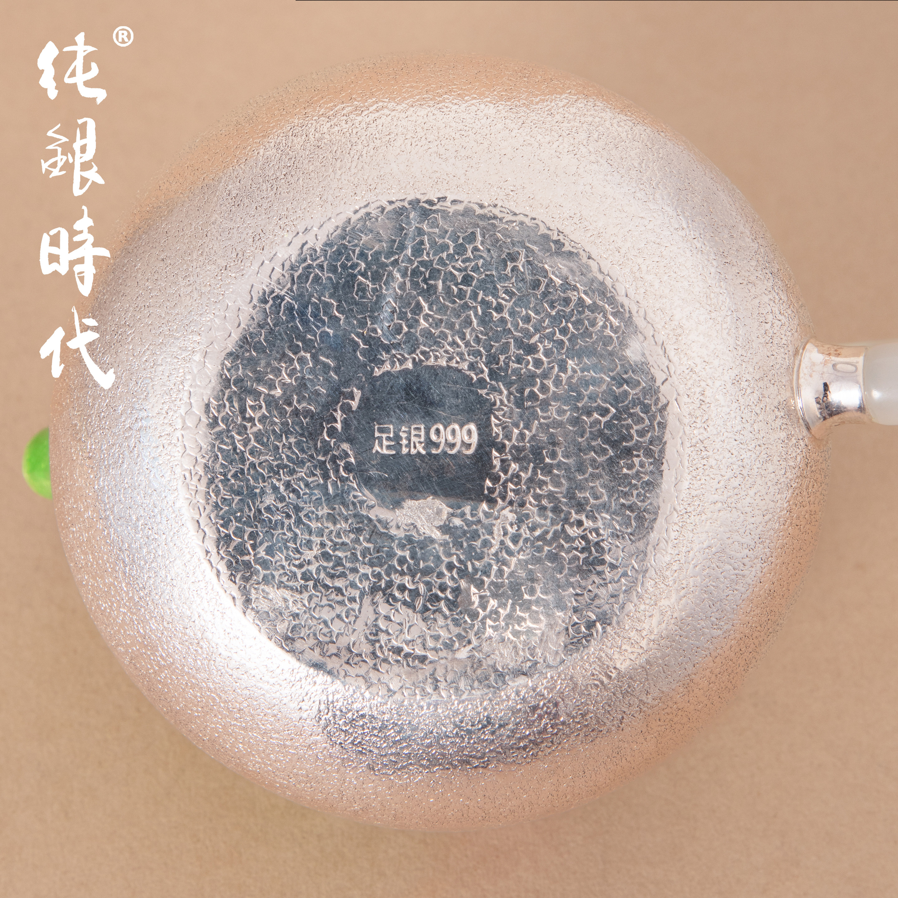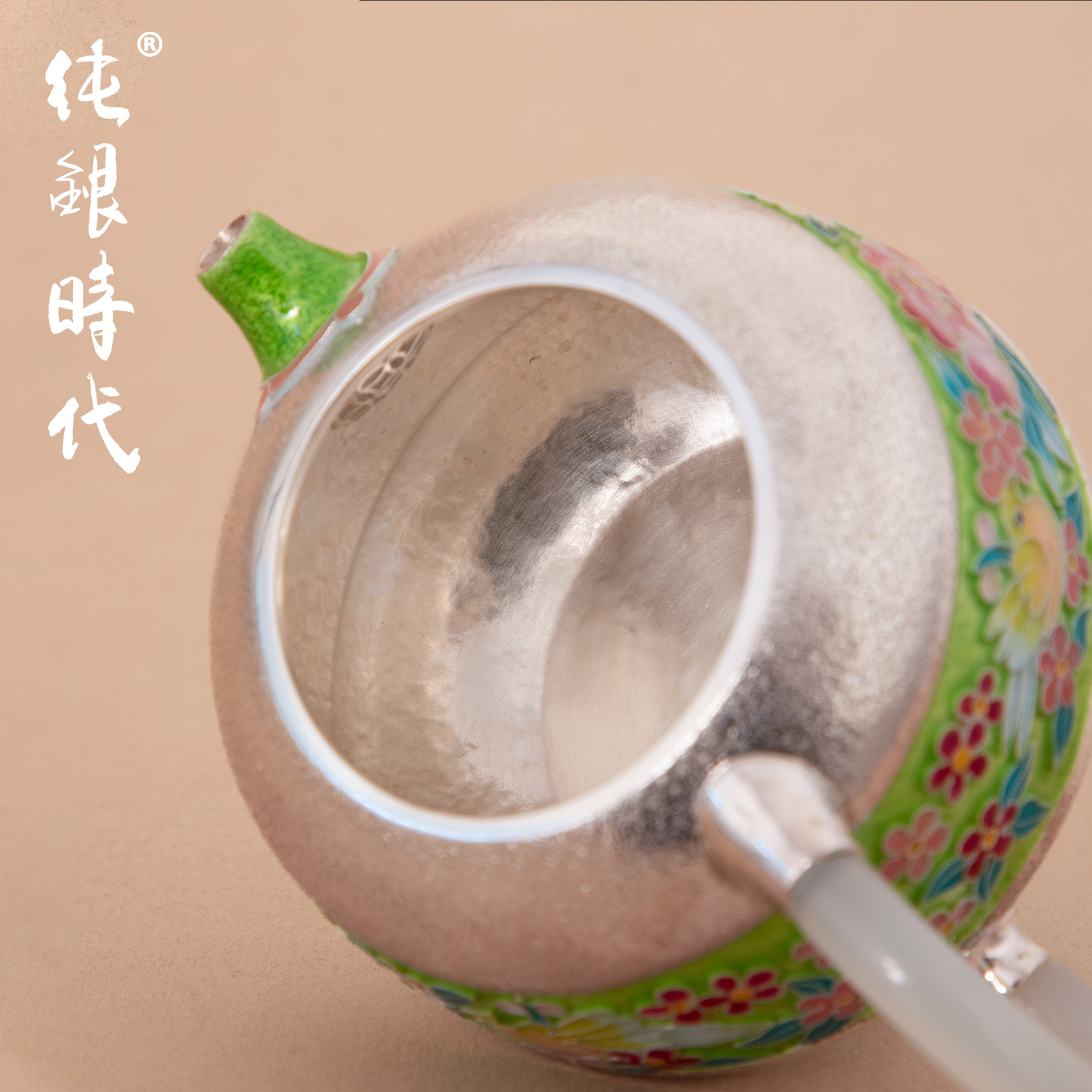 纯银时代花间泡茶壶手工非遗七宝烧纯银999家用银壶玉把防烫180ml