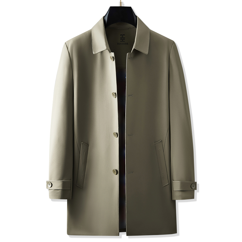 秋季新款经典中长款夹克男大码翻领行政外套胖子宽松商务休闲风衣