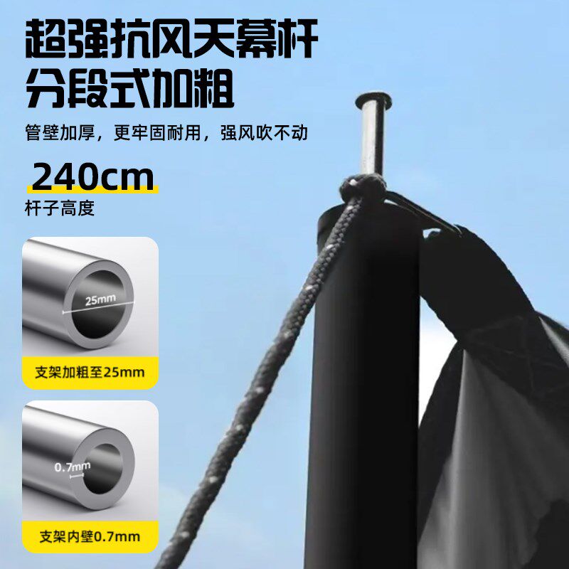 黑胶天幕帐篷户外便携露营防雨防晒遮阳棚野营野餐用品装备布