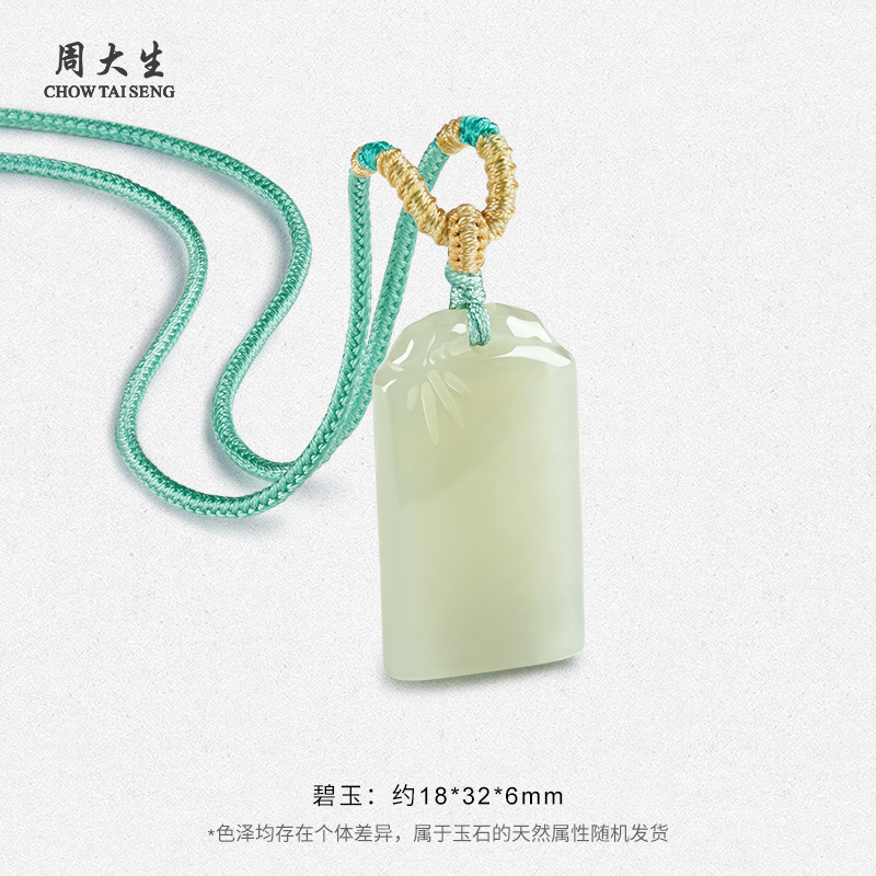 周大生官方天然和田玉平安无事牌吊坠项链男士生日礼物送男朋友