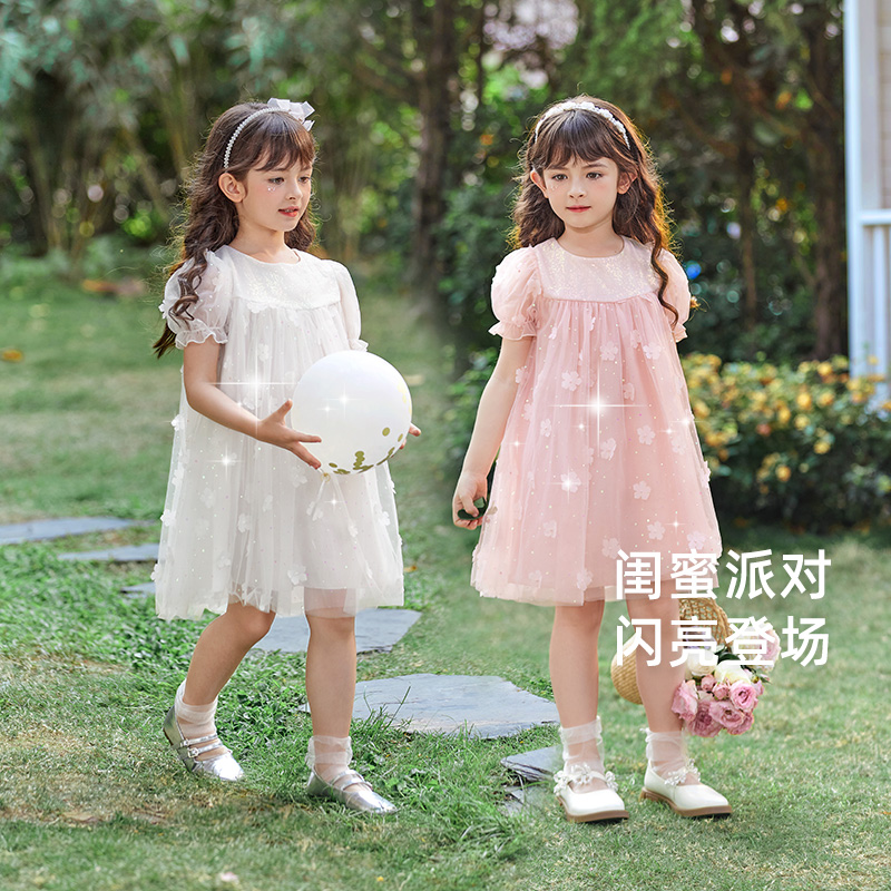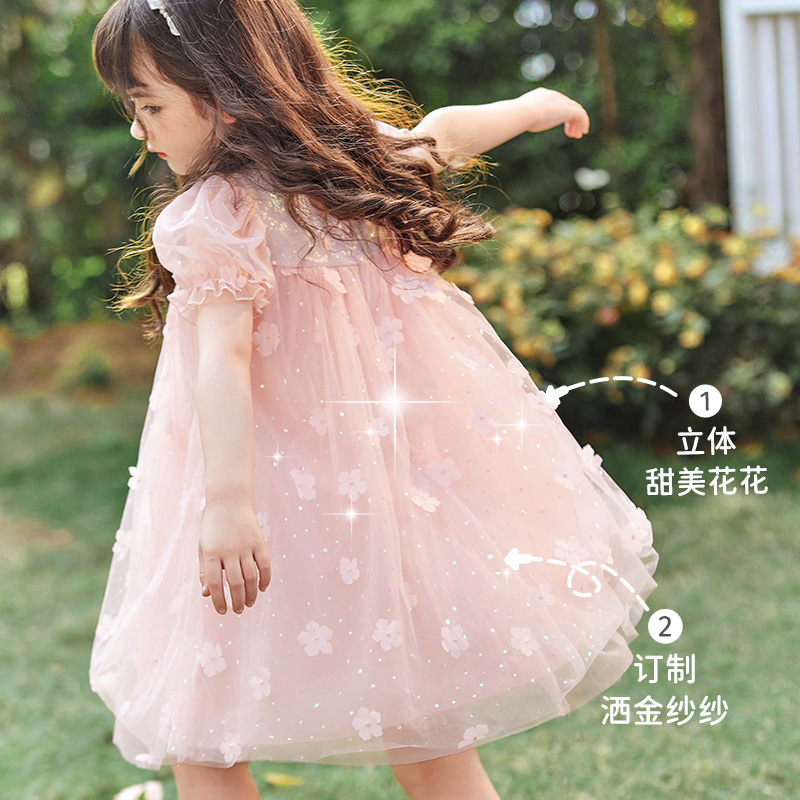 女大童夏季连衣裙小女孩粉色公主裙夏装幼童夏款裙子儿童洋气纱裙