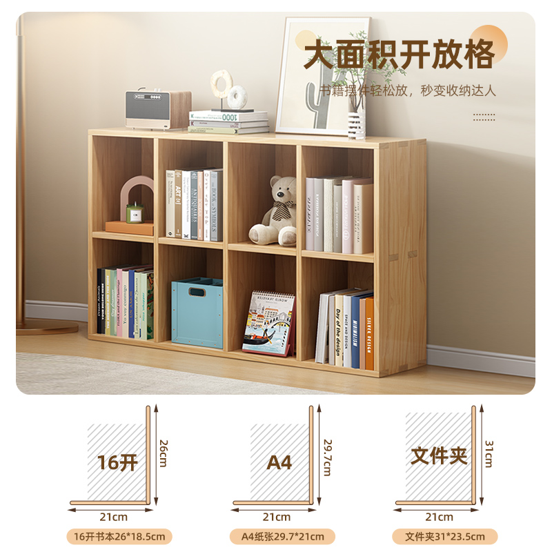 实木书架置物架落地靠墙组合格子柜家用客厅幼儿园储物收纳矮书柜