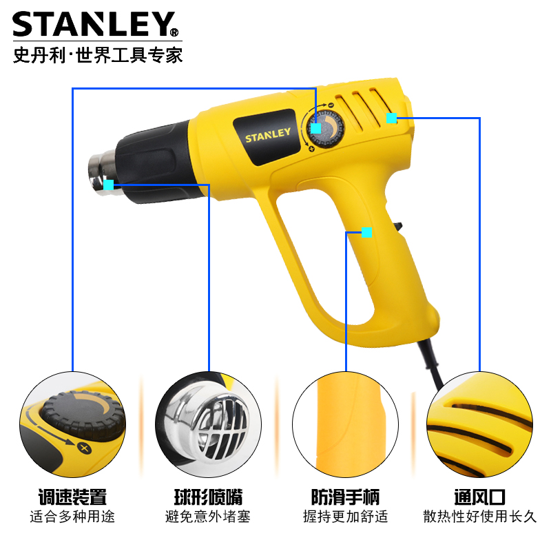 史丹利2000W可调温热风枪汽车贴膜工业热吹风机薄膜热缩STXH2000