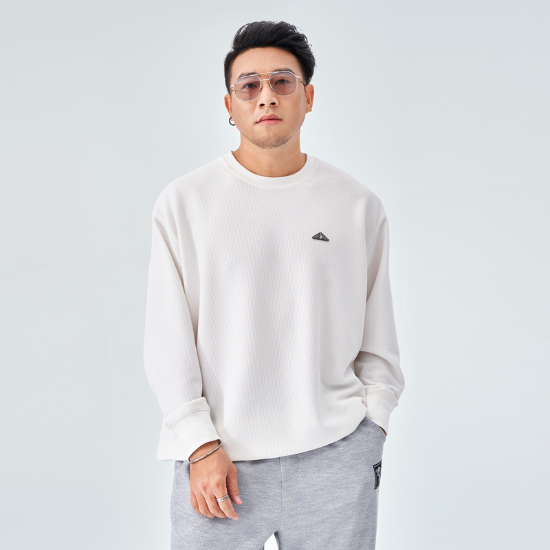 半墨大码男装华夫格卫衣男宽松圆领打底衫加肥加大肥佬秋季外套潮