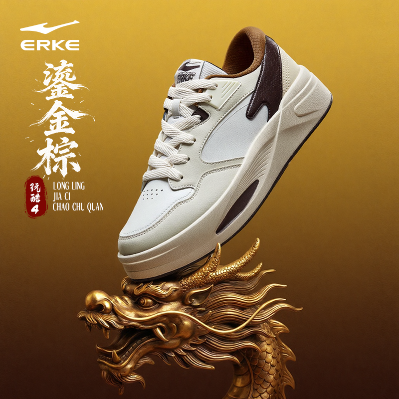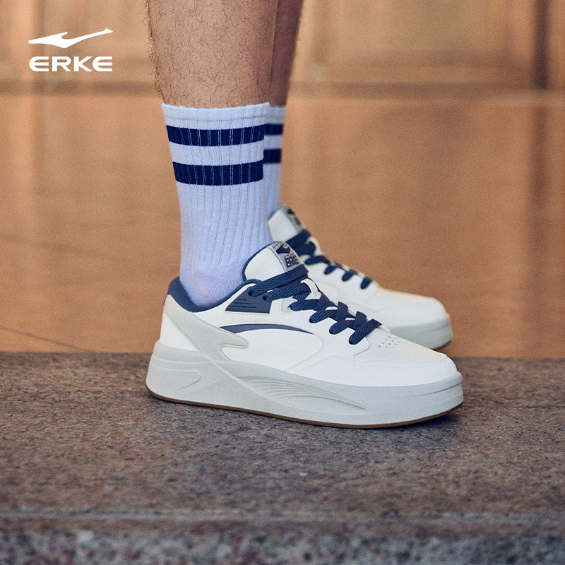 玩酷4鸿星尔克男鞋2026冬季新款皮面轻便复古厚底休闲运动滑板鞋
