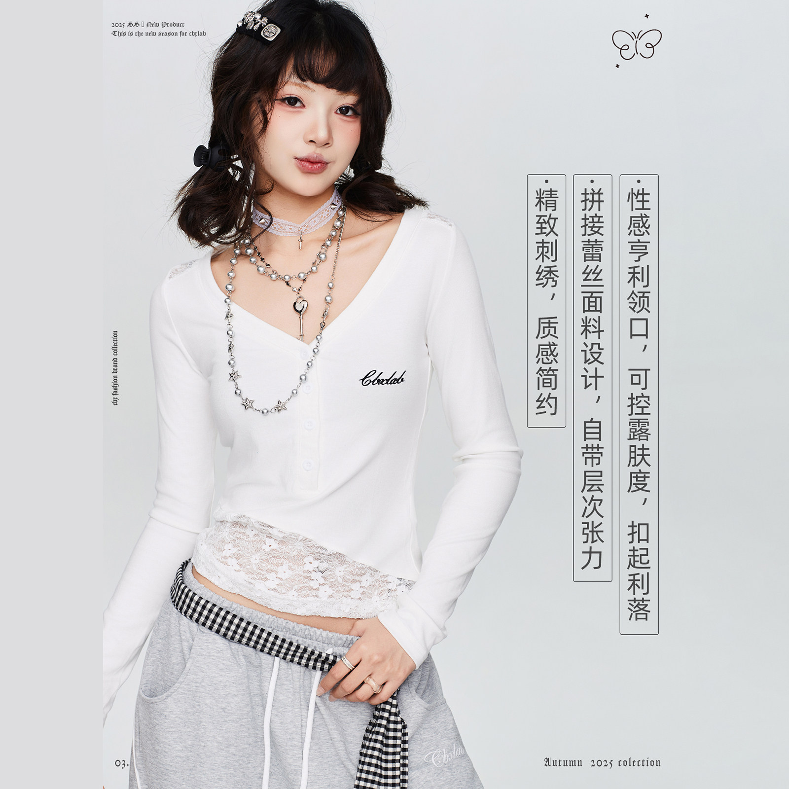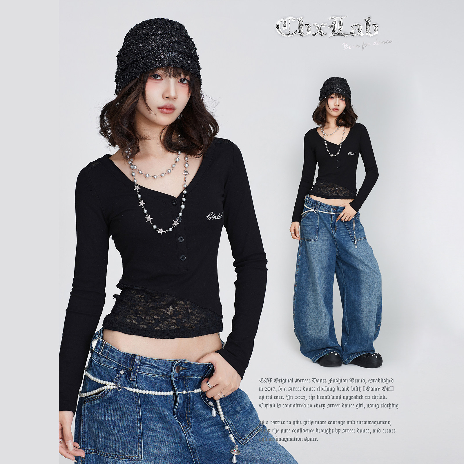 CBXLAB街舞潮牌显瘦蕾丝拼接爵士长袖美式kpop辣妹跳舞内搭上衣女